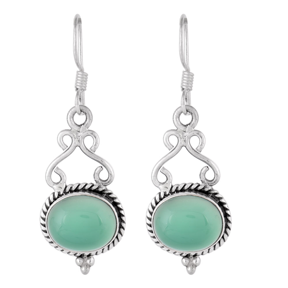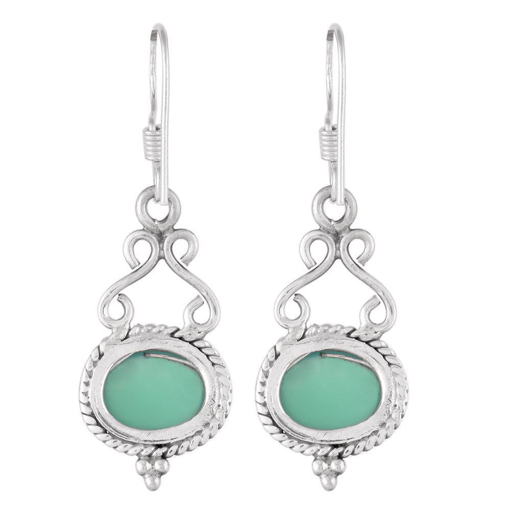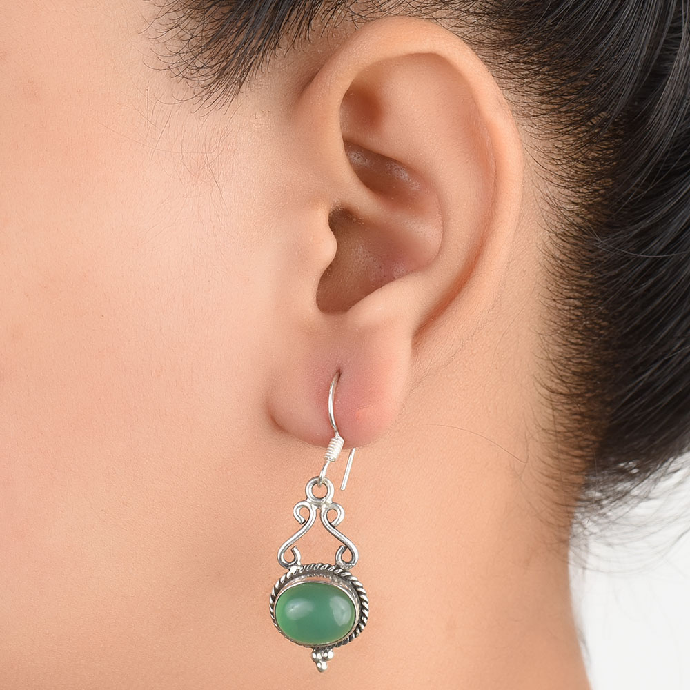 These earrings are handmade earrings with Oval Green jade with a rope border of 92.5 sterling silver metal with a hook and can be worn on birthdays, marriages, engagements or any special occasions to give it an Indian or traditional look.