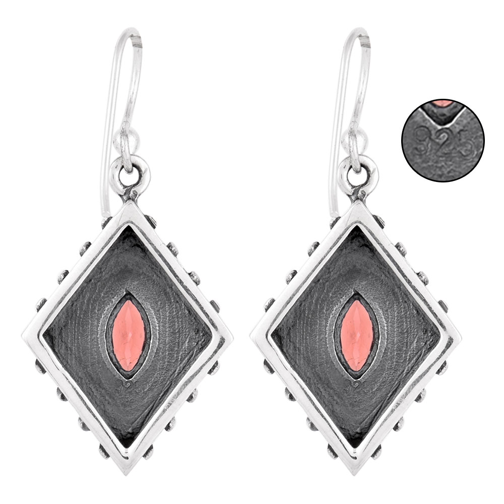 92.5 Sterling Silver Earrings Natural Kite Red Tourmaline Earrings