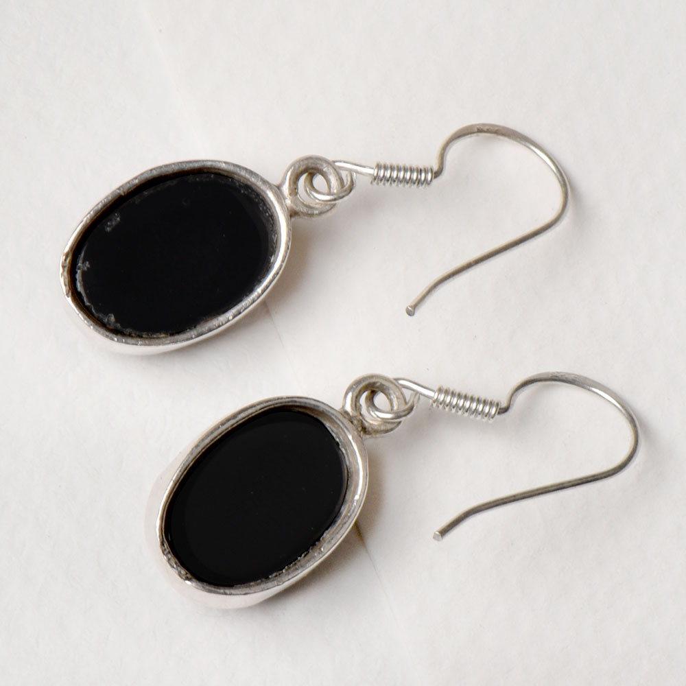 92.5 Sterling Silver Earrings with single long Oval black cabochon drop hanging fashion earrings Studded in silver metal by expert craftsmen of India is the ultimate fashion earrings to be worn in engagement ,wedding and other social gatherings.