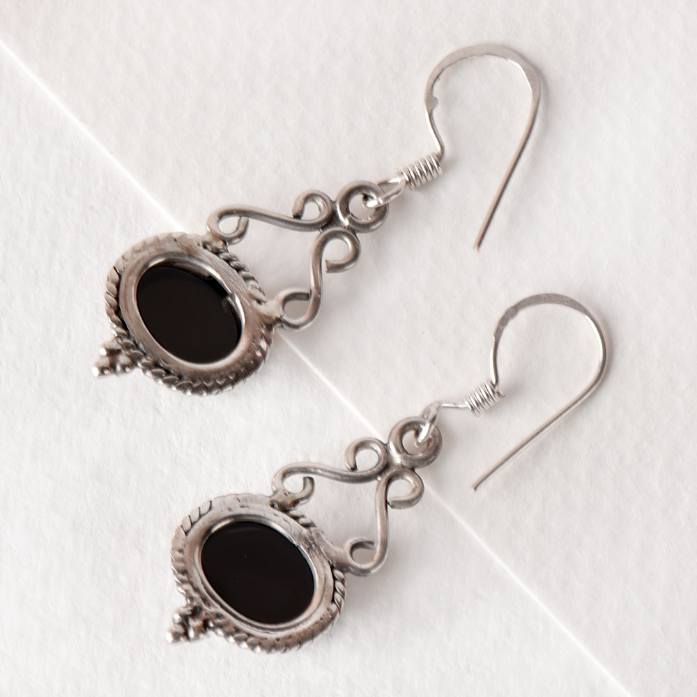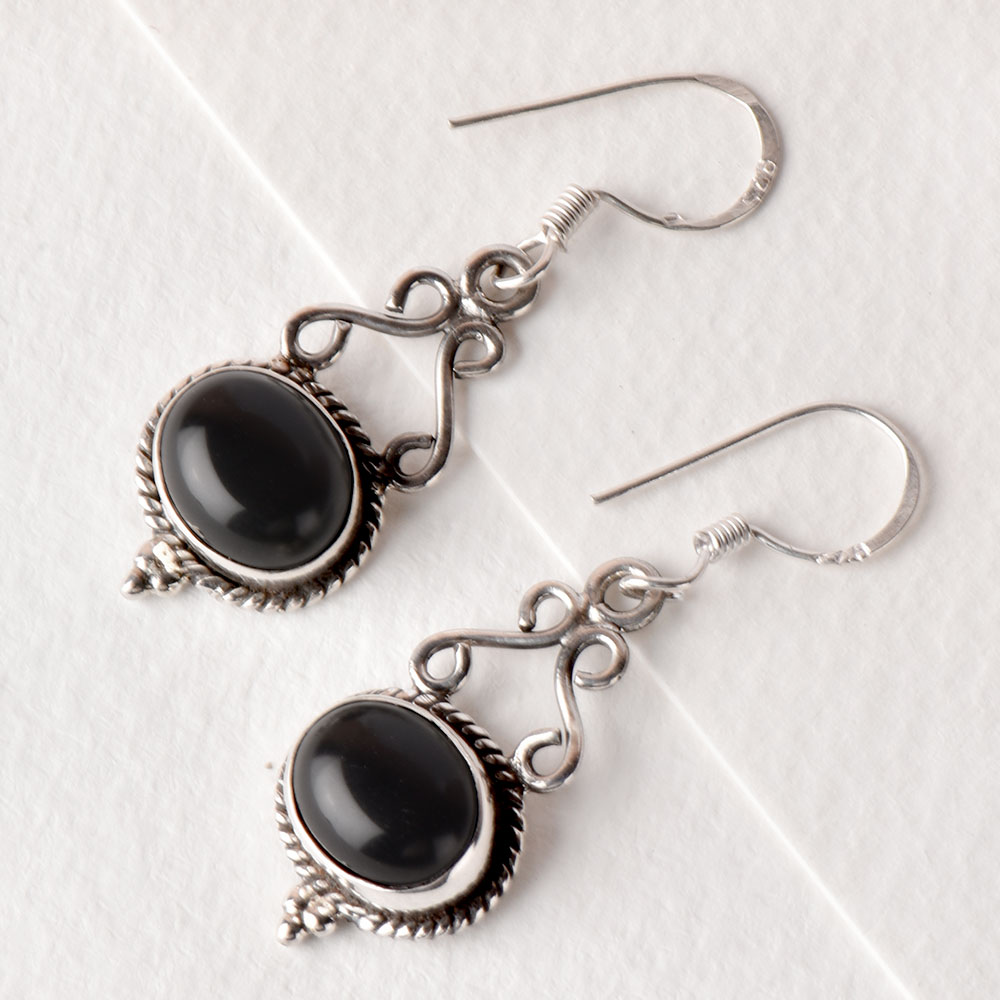 92.5 Sterling Silver Earrings Oval Black Onyx Cabochon Filigree Dangler Earrings are the perfect accessory that complements that lovely gown, dress or suit. This dangler is suitable for every day office wear or family get together outing.