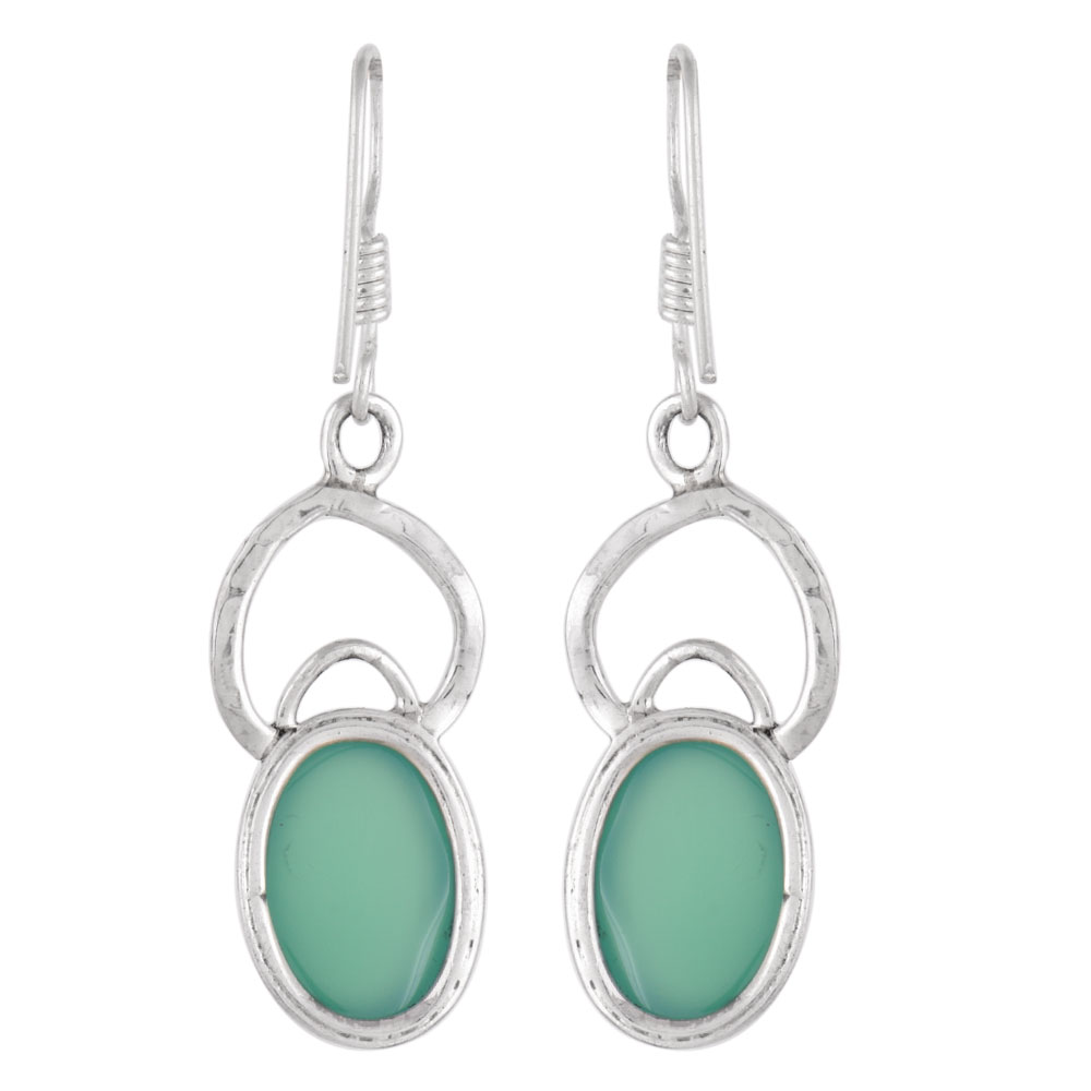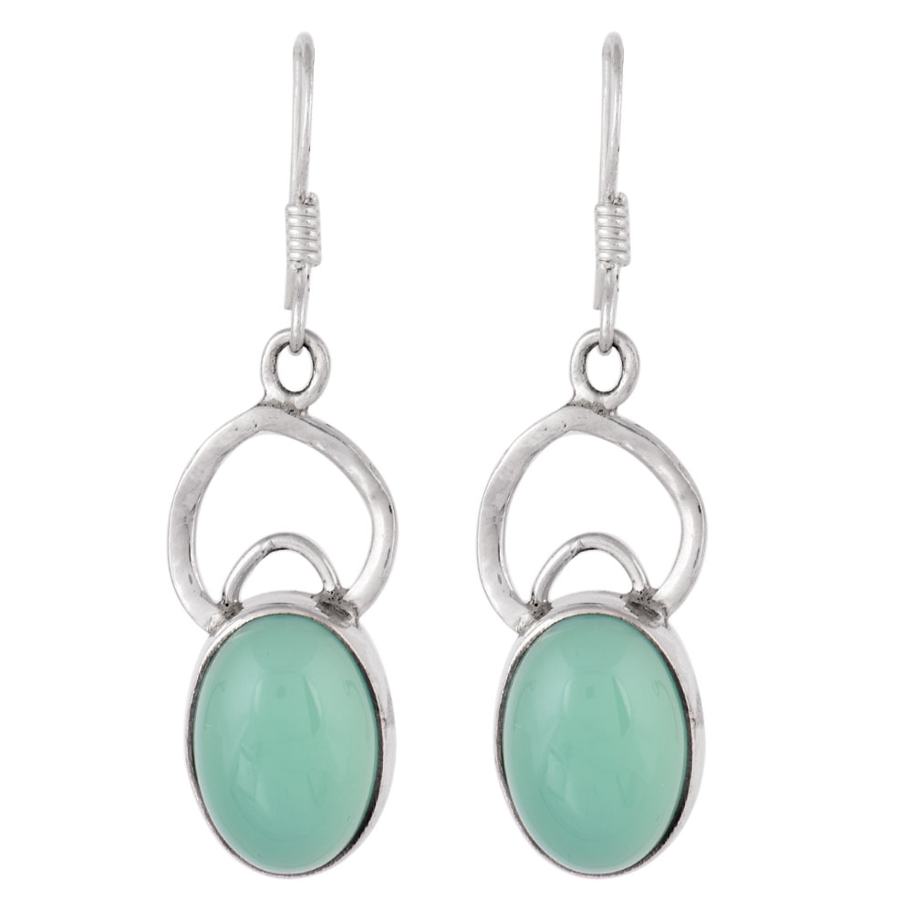 92.5 Sterling Silver Earrings Oval Chalcedony Modern Everyday Wear Earrings