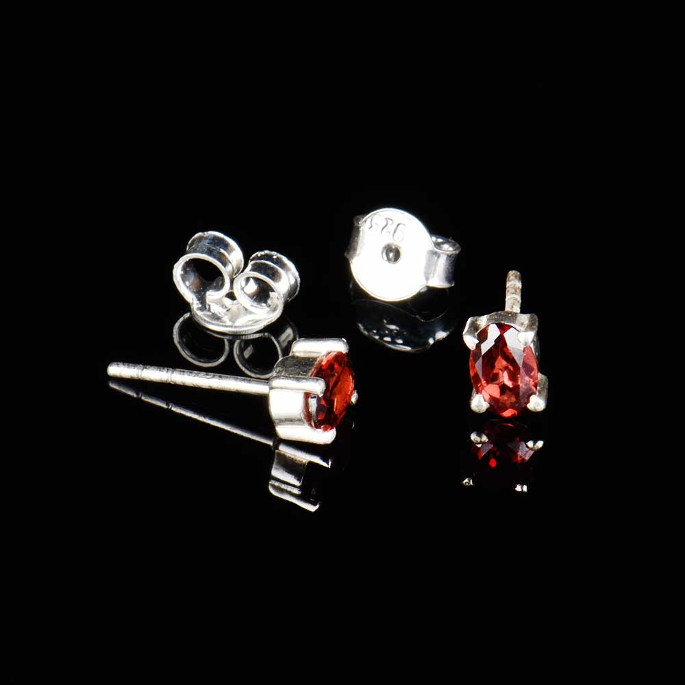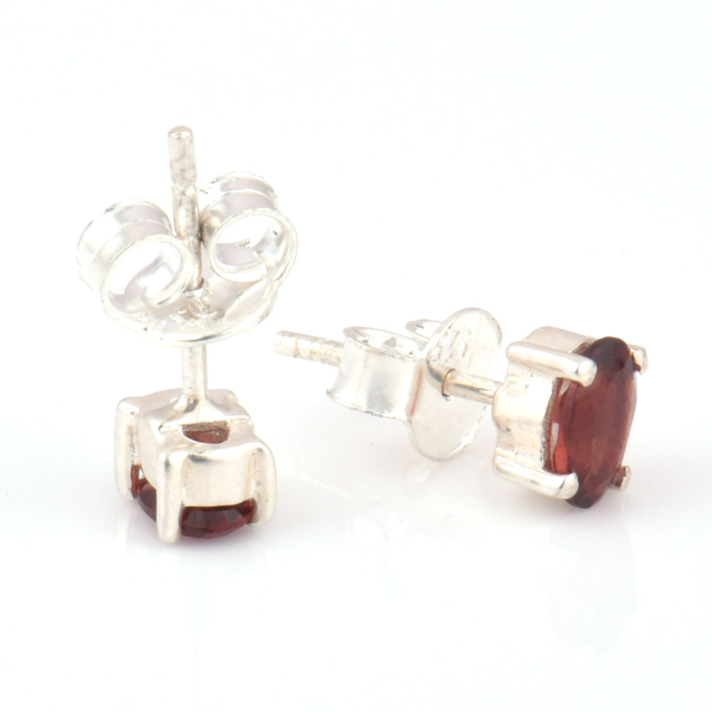 • 92.5 Sterling Silver Earrings Oval Garnet Gemstone Stud Earrings