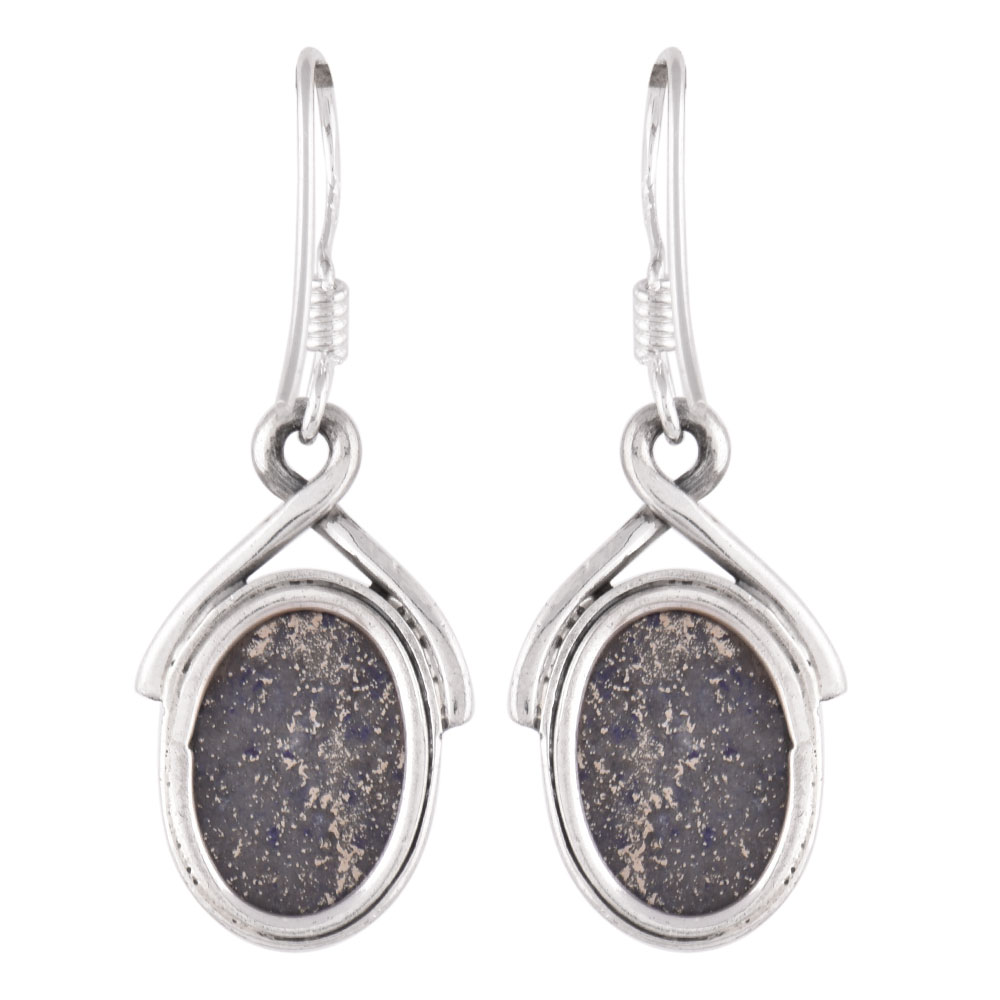 92.5 Sterling Silver Earrings Oval Rose Quartz Surrounded By Rope Design Drop Earrings