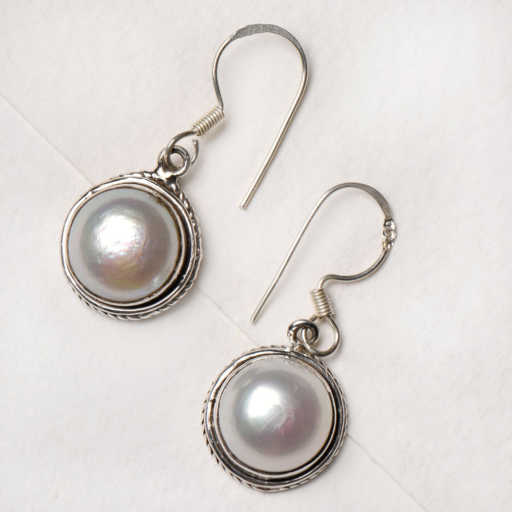 92.5 Sterling Silver Earrings Peals Studded Hook Earrings