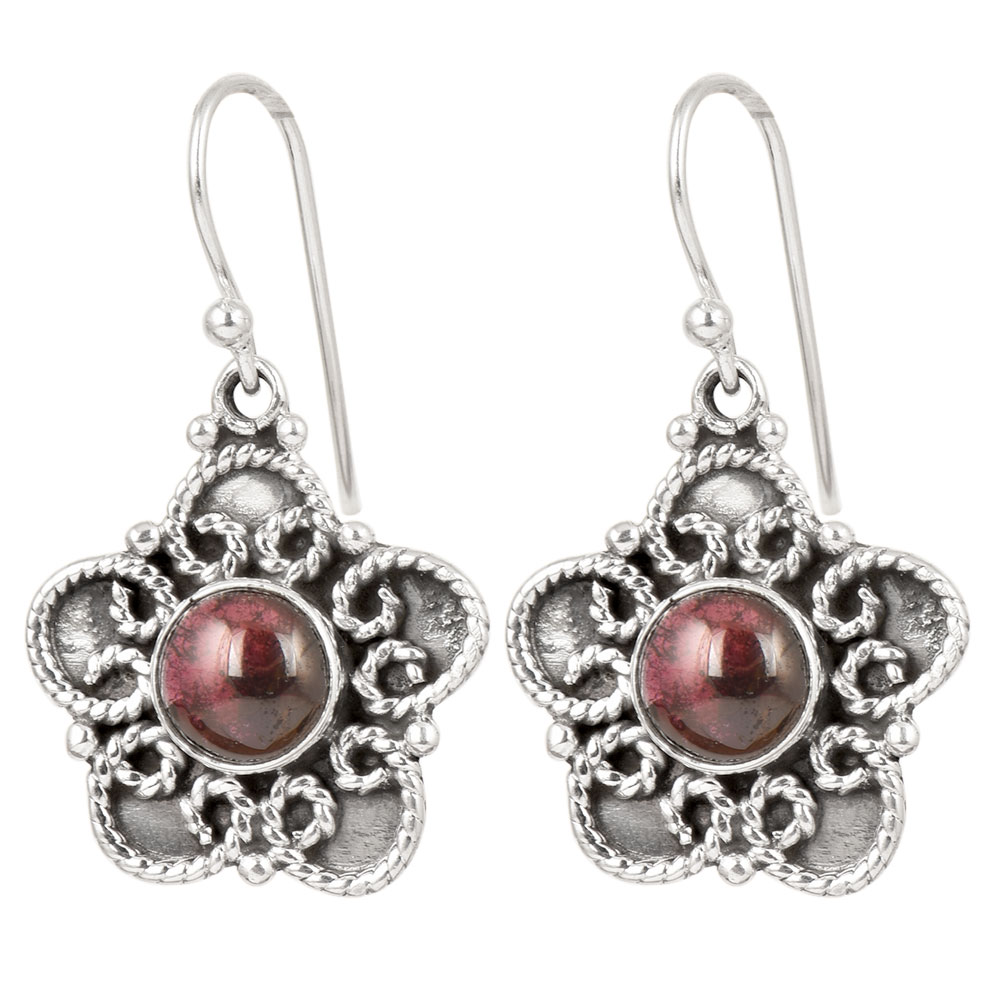 Designer earrings with the adornment of  Purpe Jade in silver flower design hanging from the center crafted in pure 92.5 Sterling Silver. Perfect outfit's danglers earring for any party and occasion day to night and Perfectly suited for Wedding, Ethnic, Festive Party wear