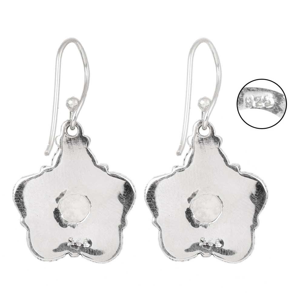 Rainbow Moonstone floral design drop earrings made from 92.5 sterling silver are Fashioned with utmost precision, this gorgeous pair of earrings will spruce up your style in a jiffy. Simple design that goes with any outfit to add a natural, but contemporary look.