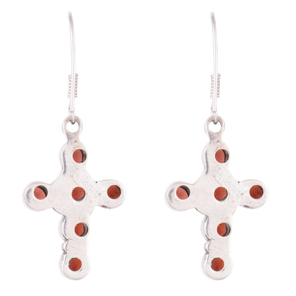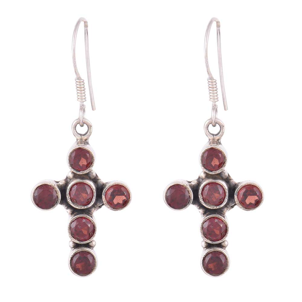 • 92.5 Sterling Silver Earrings Red Garnet Cross Hanging Earrings