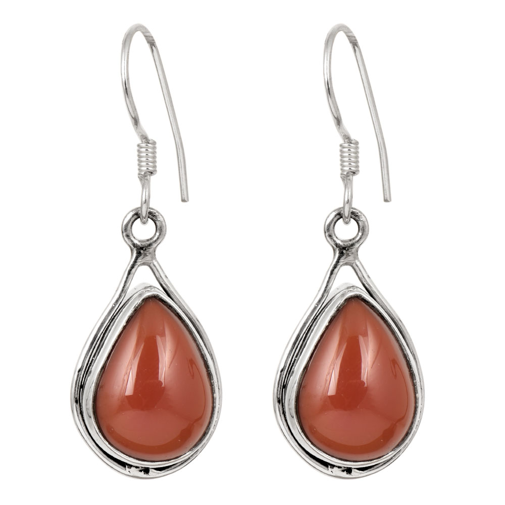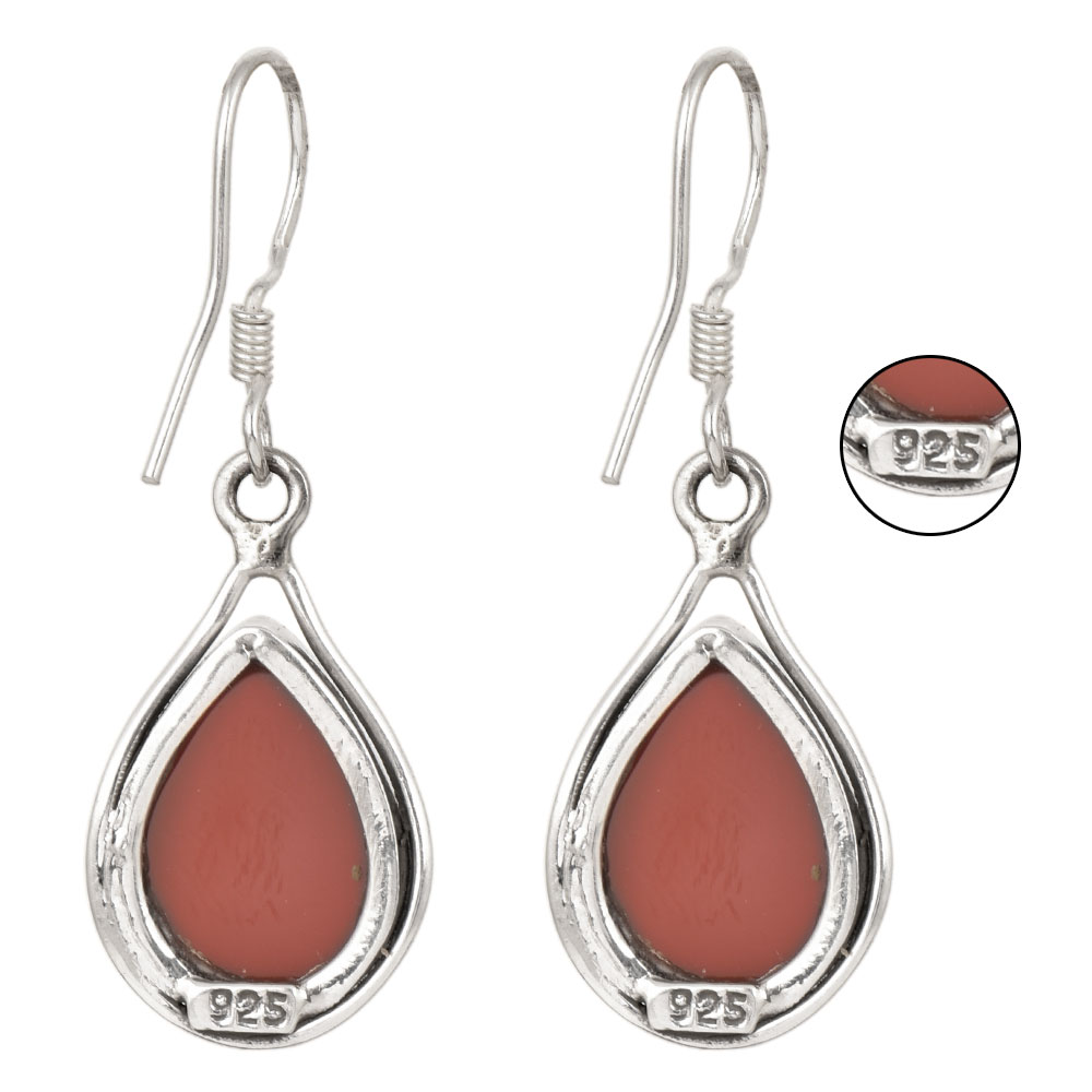 • 92.5 Sterling Silver Earrings Red Jasper Raindrop Studded Earrings