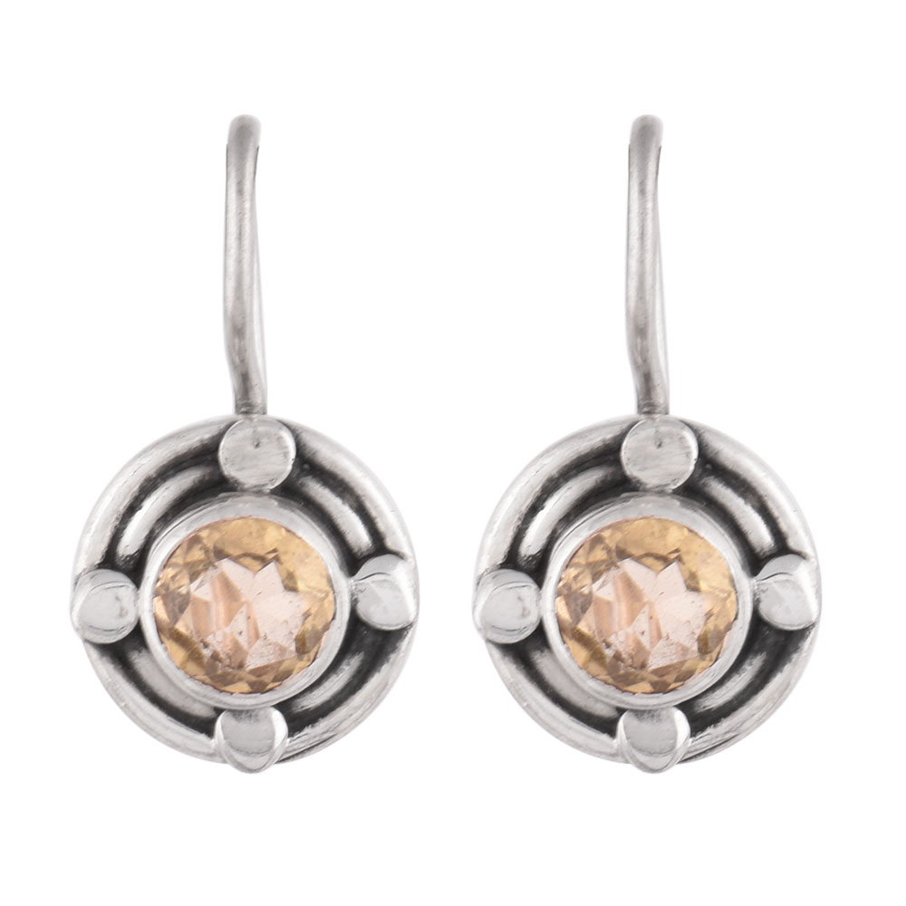 A very Feminine looking 92.5 Sterling Silver Earrings with two pink quartz in round and long oval drop encrusted in bezel setting and the oval drop stone has a lovely embossed border that gives it a very festive look. Great gift for your sister and friend.