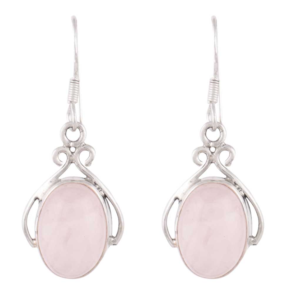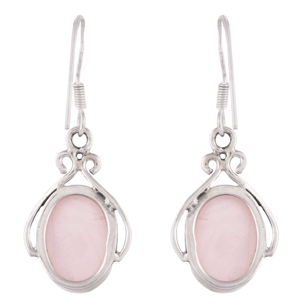 • 92.5 Sterling Silver Earrings  Rosy Quartz Hook Earrings
