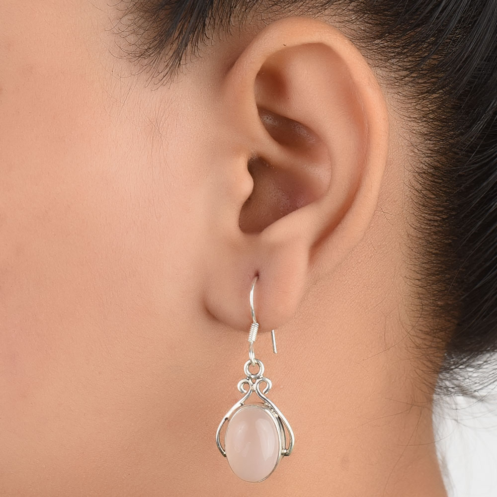 92.5 Sterling Silver Earrings Rosy Quartz Hook Earrings