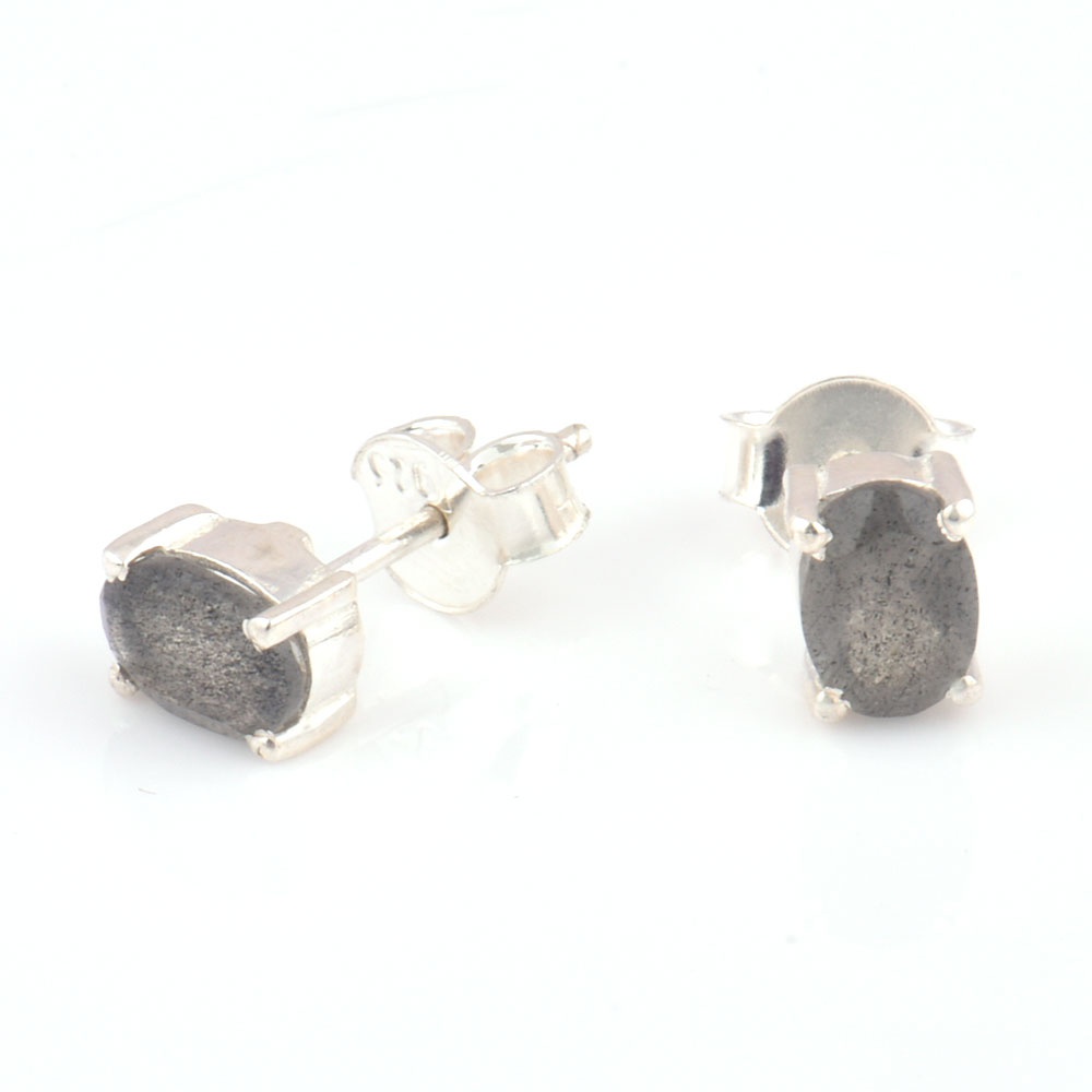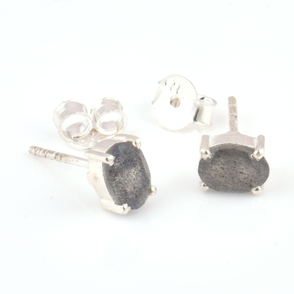 92.5 Sterling Silver Earrings Semi Precious Cloudy Quartz Gemstone Stud Earrings