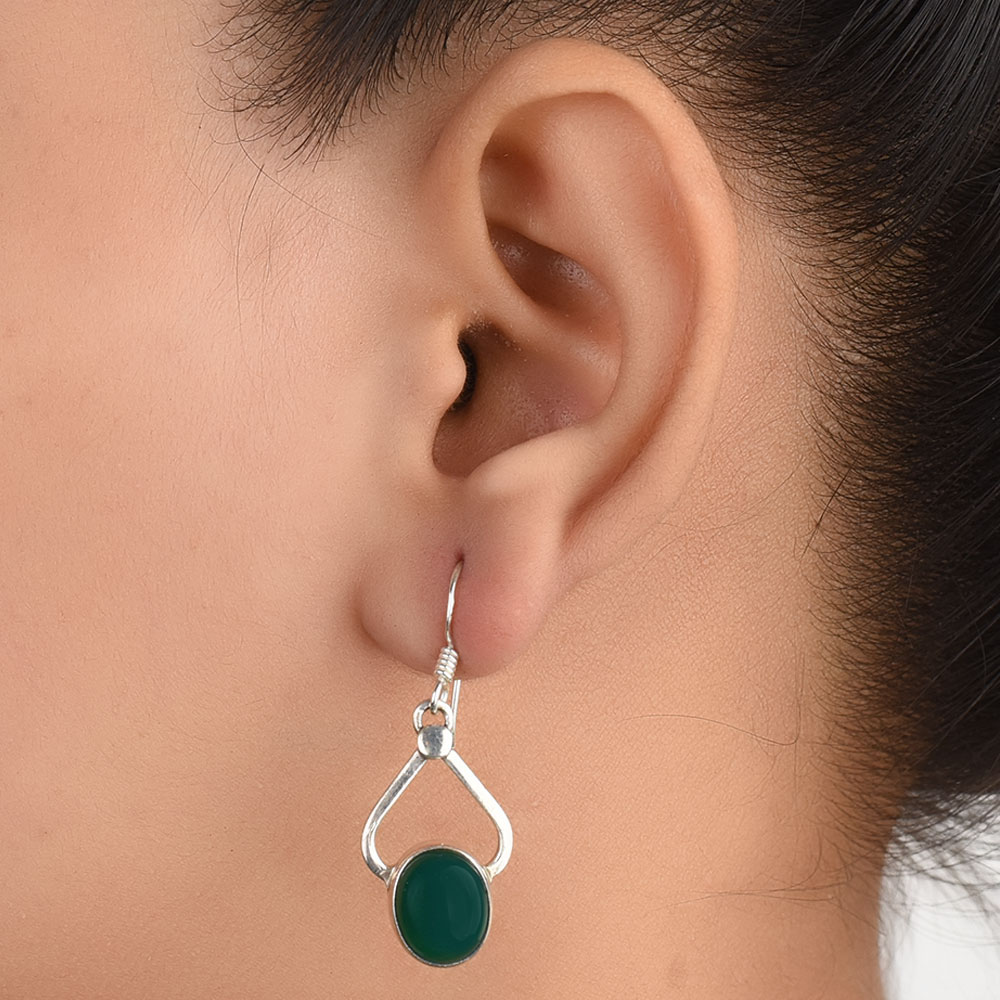 92.5 Sterling silver earrings Floral Green Agate hook earrings are fashioned with utmost precision, this gorgeous pair of earrings will spruce up your style in a jiffy. Simple design that goes with any outfit to add a natural, but contemporary look.