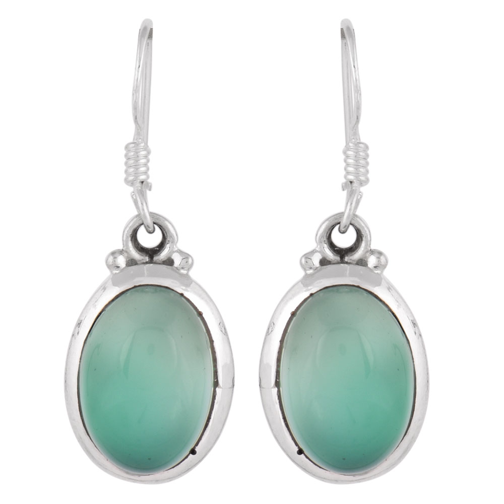 92.5 Sterling Silver Earrings Single Green Onyx Teardrop Hook Earrings