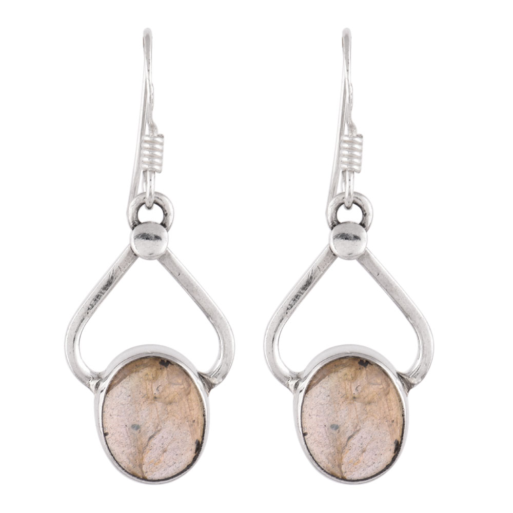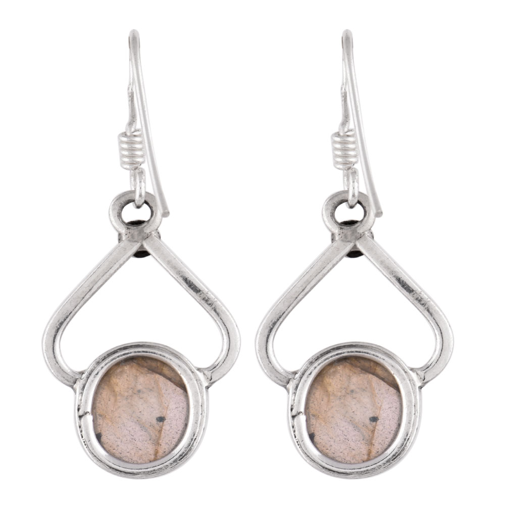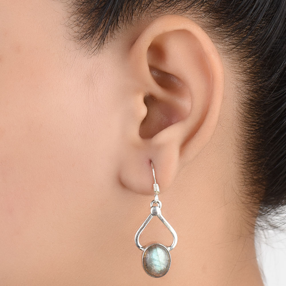 A handcrafted elegant 92.5 Sterling Silver Earrings made by the master craftsmen of India this is most suited to girls going to colleges and universities and office wear. A single moonstone in oval shape in bezel setting and a wired loop design on top of the stone and hook that makes it comfortable to wear it everyday .