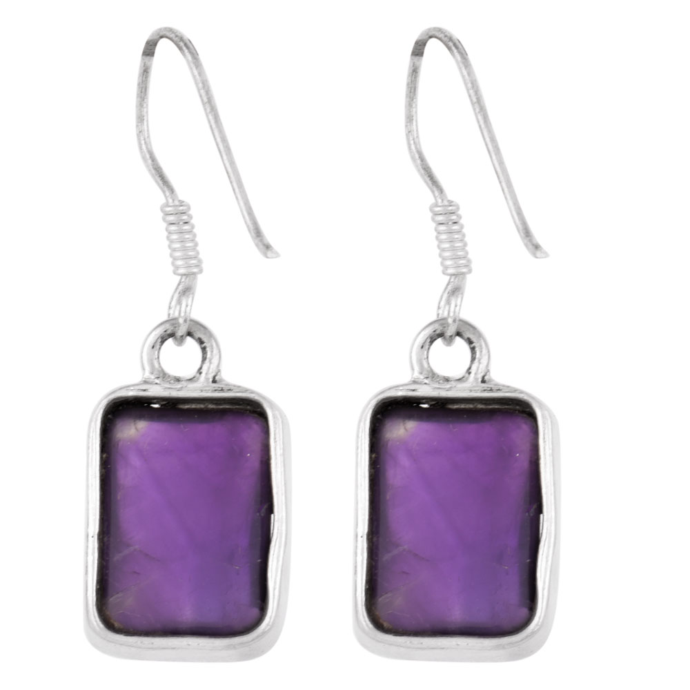 Jazz up your look with these hand crafted Silver Amethyst earrings. Crafted in a stylish square frame of sterling silver, the pair boasts captivating charm. These earrings will bring a feminine appeal to your personality with a taste of an exquisite appeal.