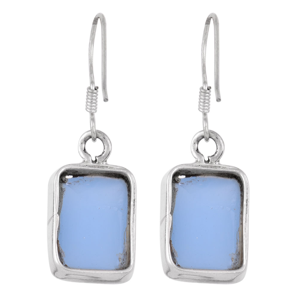 92.5 Sterling Silver Earrings Square Framed Quartz Sky Blue Earrings