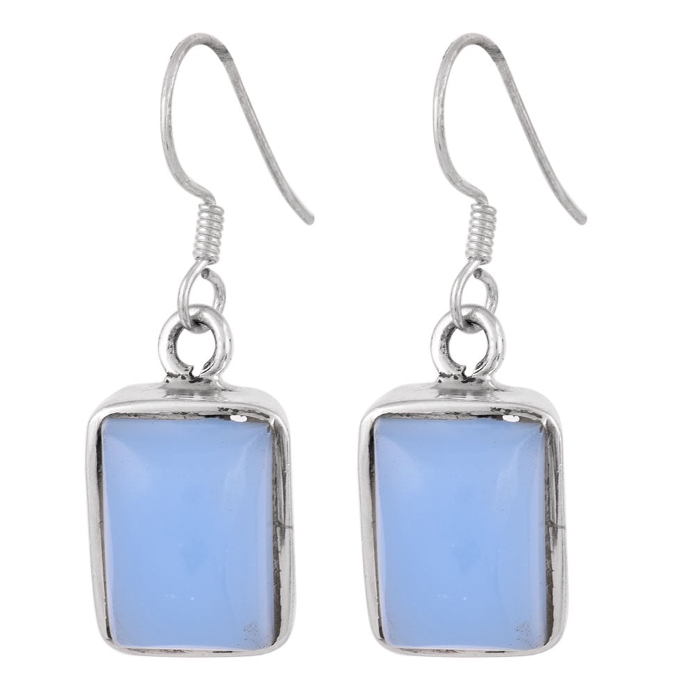 • 92.5 Sterling Silver Earrings Square Framed Quartz Sky Blue Earrings