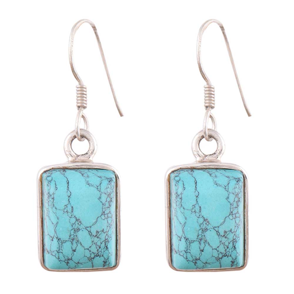 Jazz up your look with these hand crafted Silver turquoise earrings. Crafted in a stylish square frame of sterling silver, the pair boasts captivating charm. These earrings will bring a feminine appeal to your personality with a taste of an exquisite appeal.