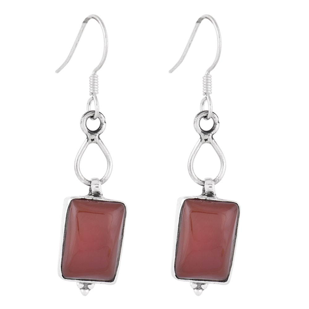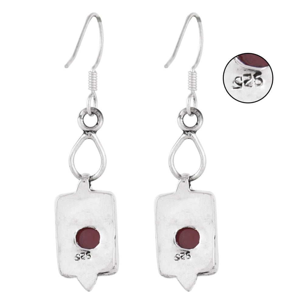92.5 Sterling silver Earrings Square Red Carnelian Design Hook Earrings