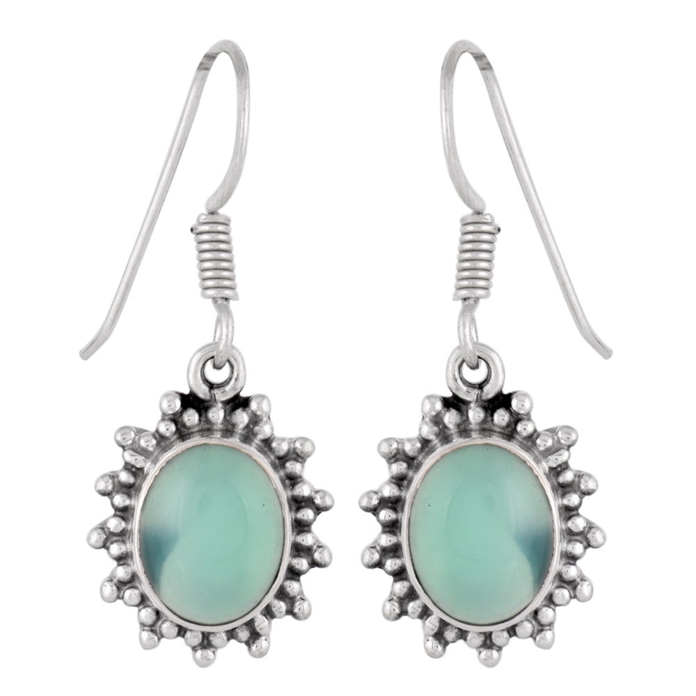92.5 Sterling Silver Earrings Starry Chrysoprase Hook Earrings