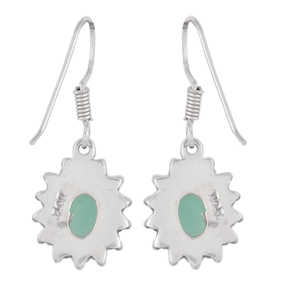 • 92.5 Sterling Silver Earrings Starry Chrysoprase Hook Earrings