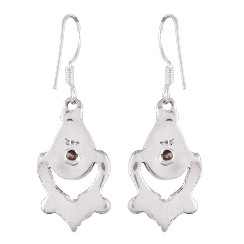 A very traditional and elegant looking 92.5 Sterling Silver Earrings round Aquamarine and Moonstone with wavy border attached to each other with a hook is handmade by the expert artisans of India. These cool blue danglers compliment a blue attire whether traditional or modern. An excellent gift for your friend , mother and sister.