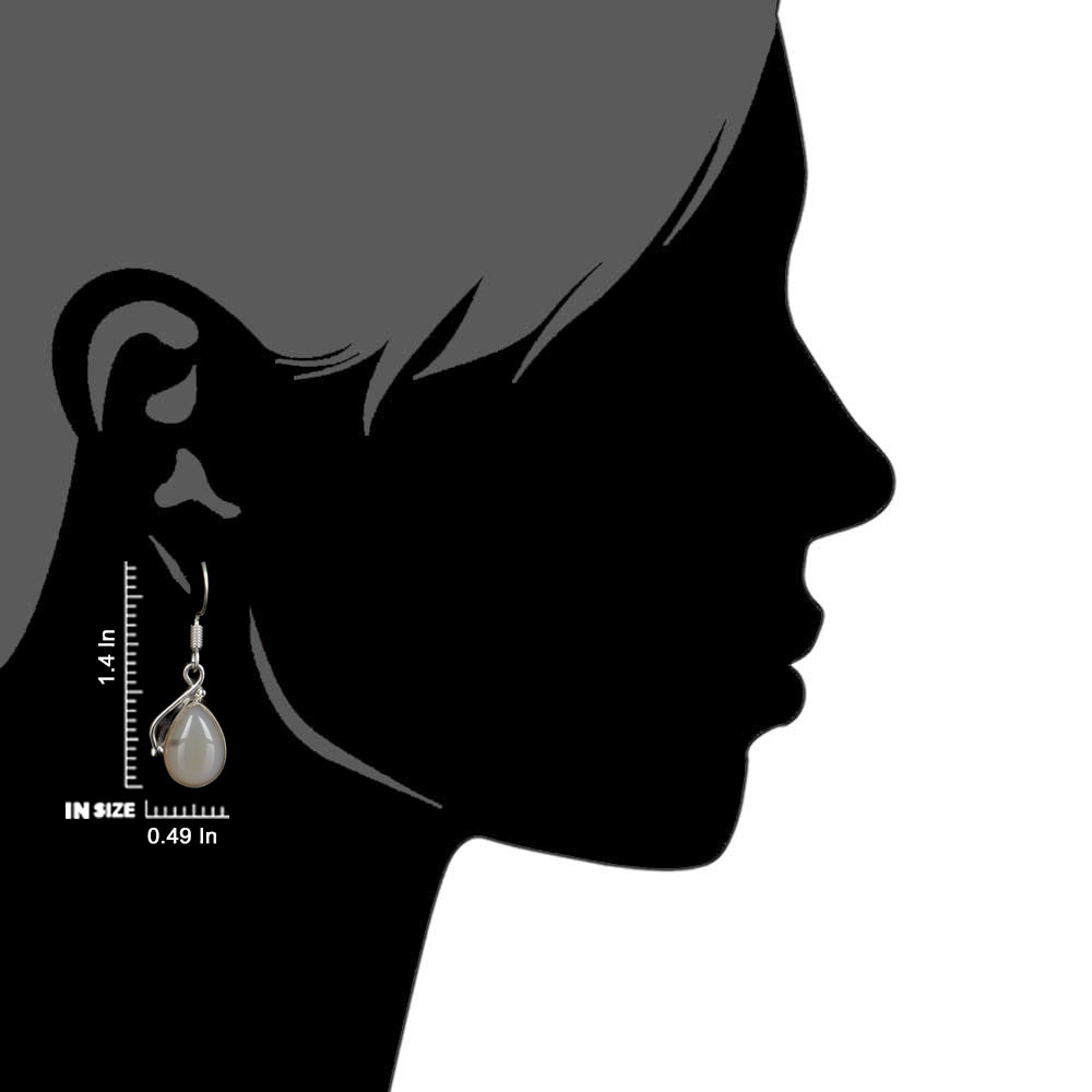 92.5 Sterling Silver Earrings Tear Drop Peach Moonstone Danglers