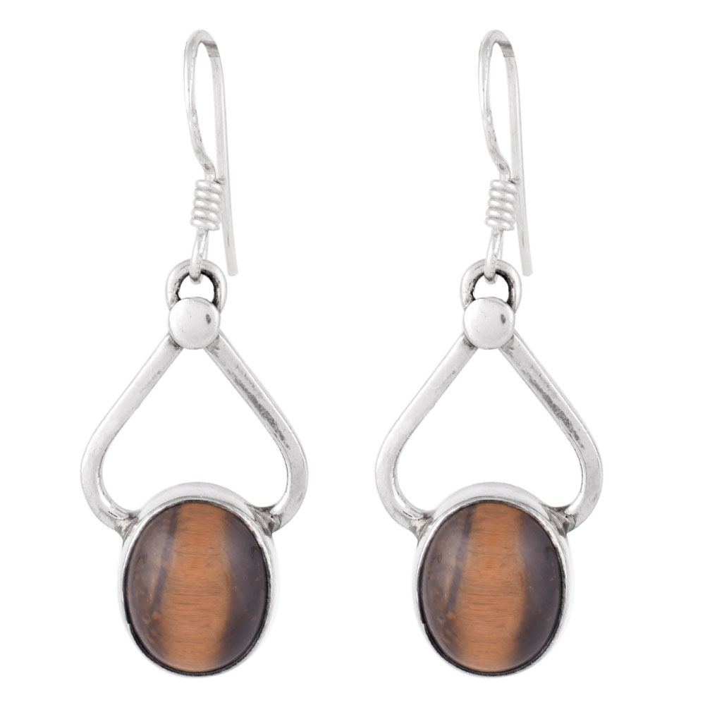 92.5 Sterling Silver Earrings Tiger's Eye Drop Earrings