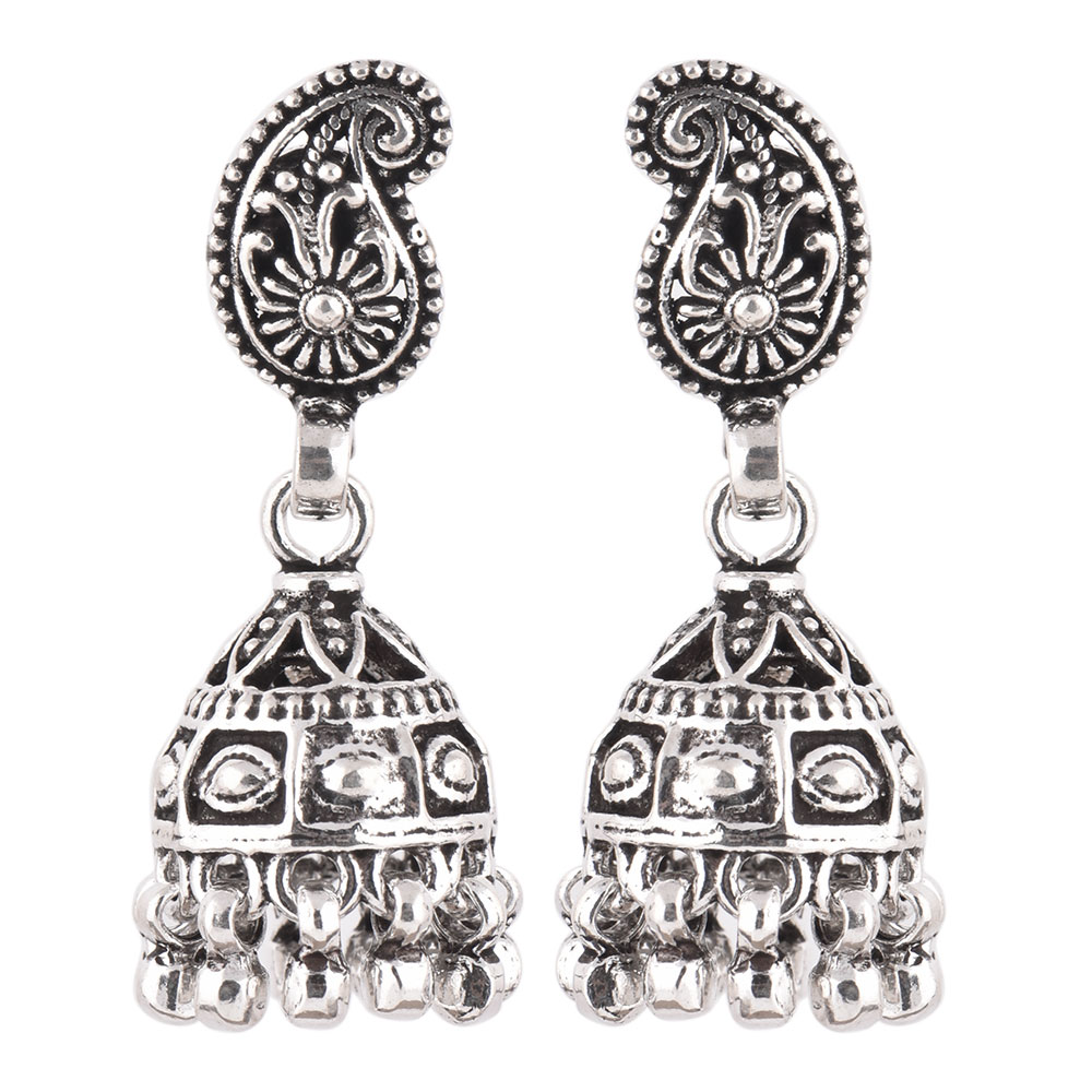 • 92.5 Sterling Silver Earrings Tribal Engraved Paisley Jhumkis