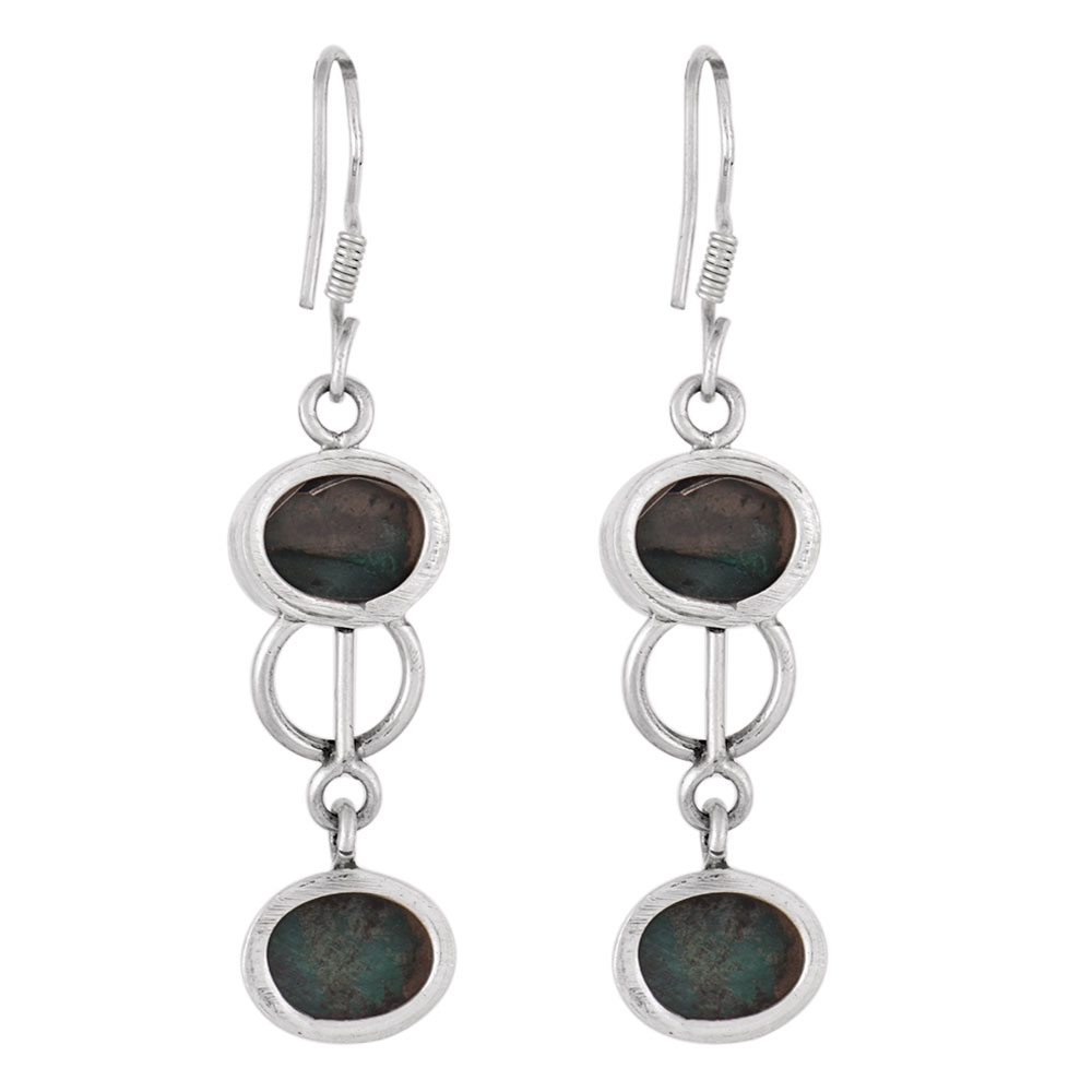 92.5 Sterling Silver Earrings Twin Jade Dangler Earrings