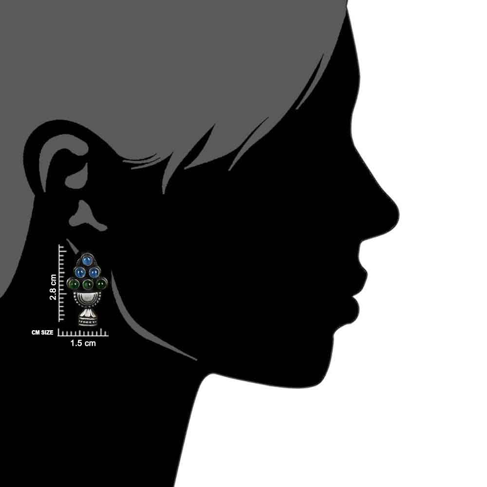 • 92.5 Sterling Silver Earrings With Blue Topaz And Green Onyx Stones Jhumkis