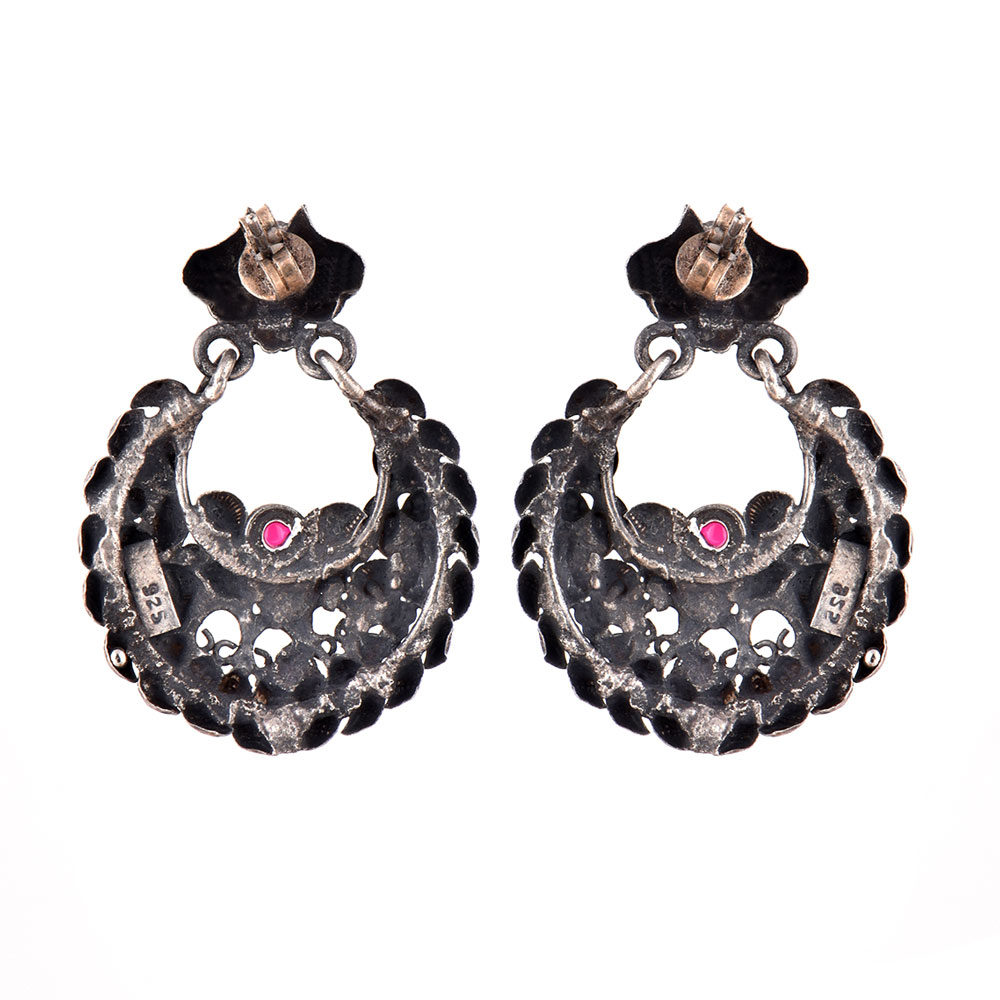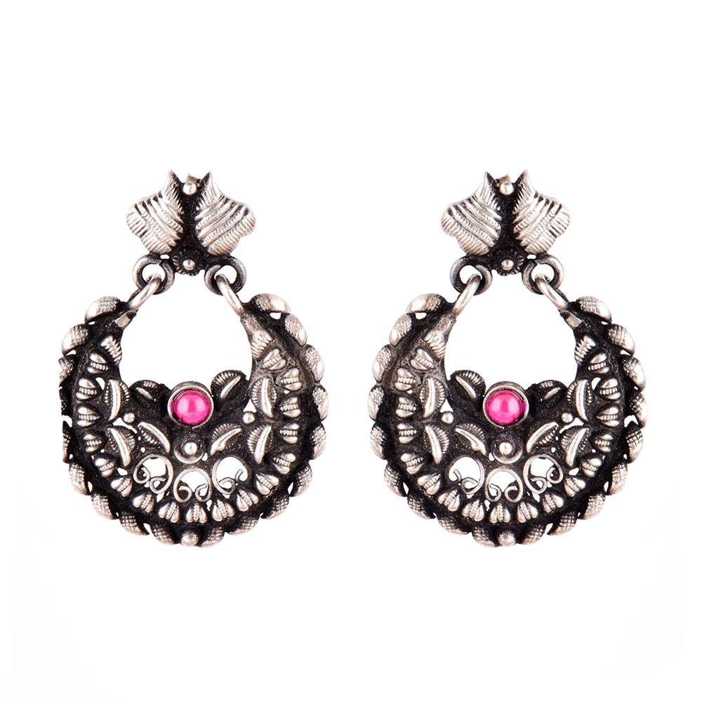 92.5 Sterling Silver Earrings With Heart Motifs And Round Pink Jade Chandbali Earrings For Women . The oxidized color make it an every day or office wear accessory. Can be gifted to near or dear ones on birthdays or anniversaries.