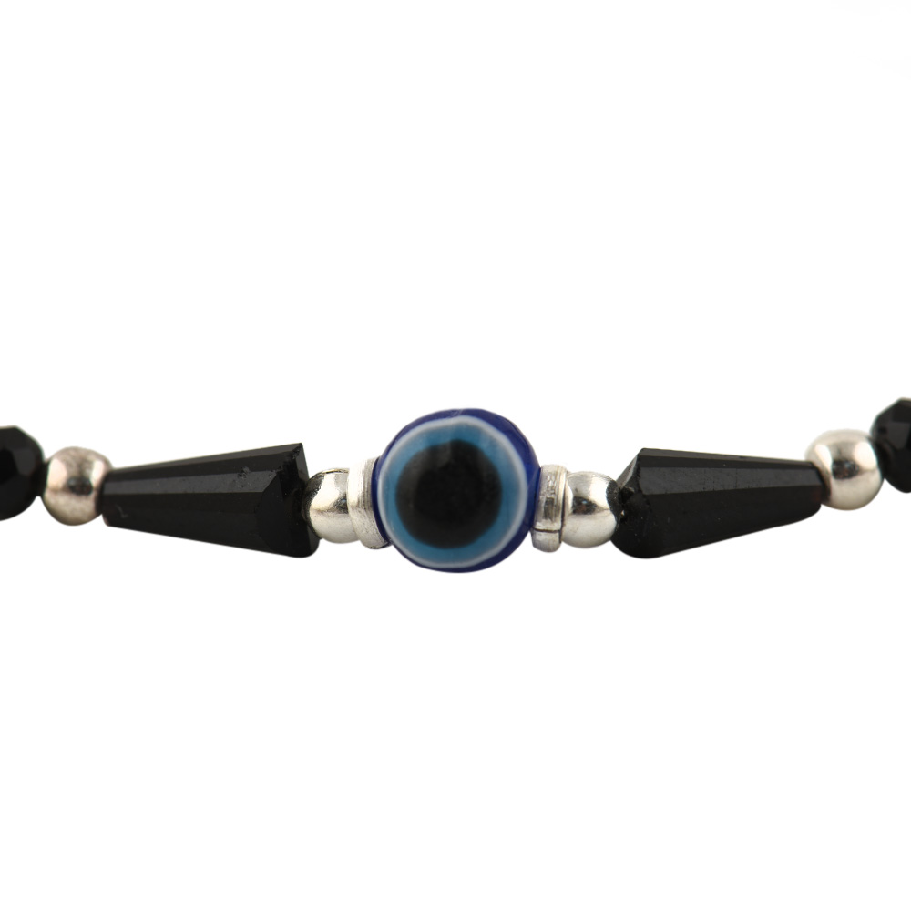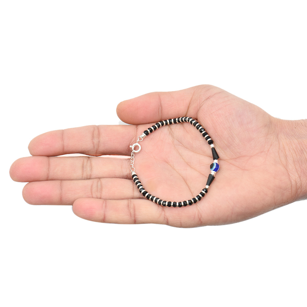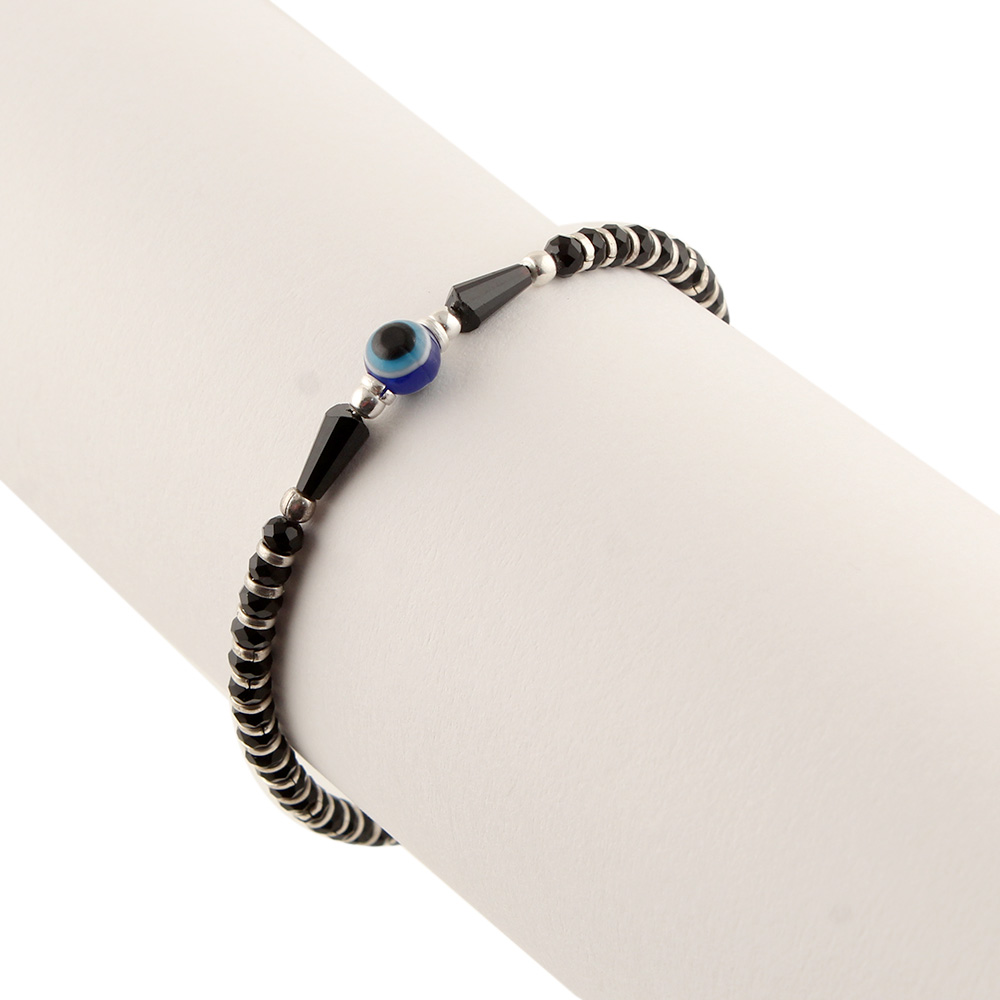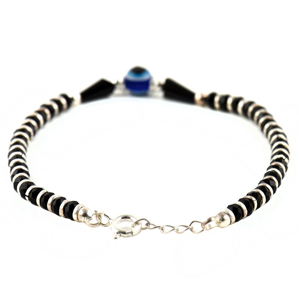 • 92.5 Sterling Silver Evil Eye Black Bead Crystal Bracelet