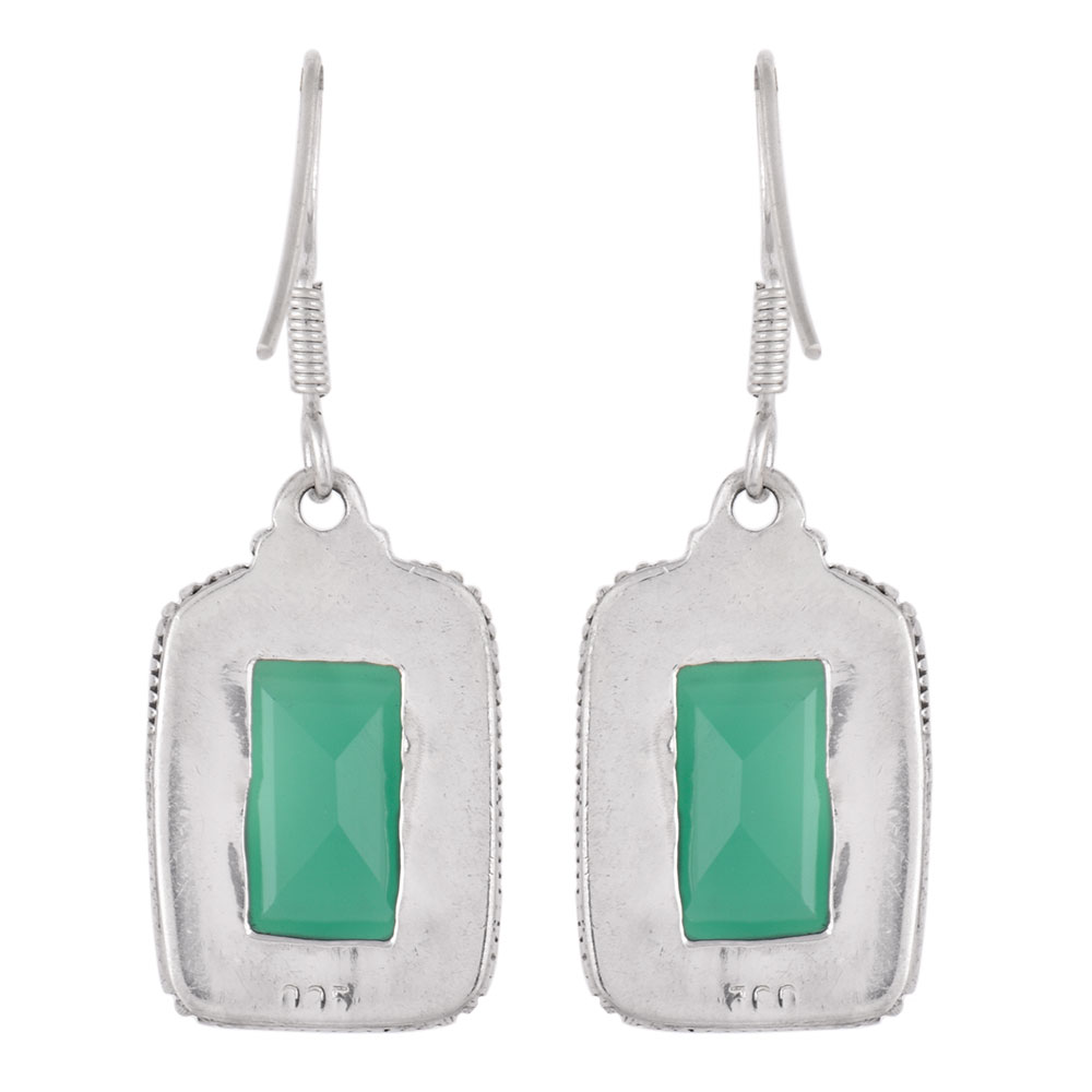 • 92.5 Sterling Silver Green Agate Earrings Rectangular Border Girlfriend Gift