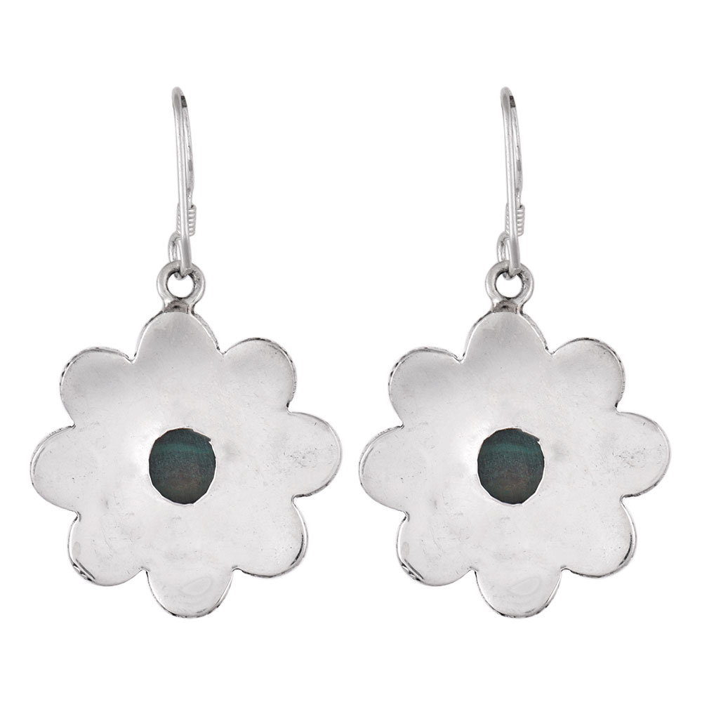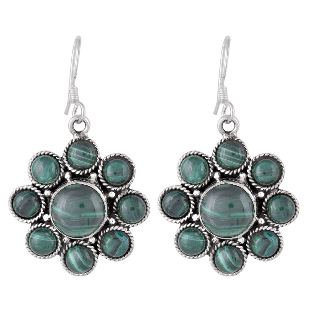 • 92.5 Sterling Silver Green Malachite Flower Design Earrings For women