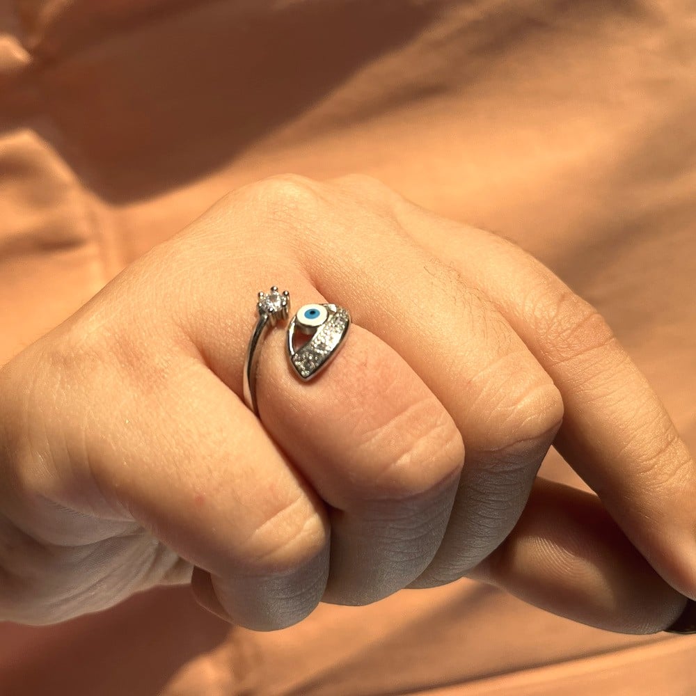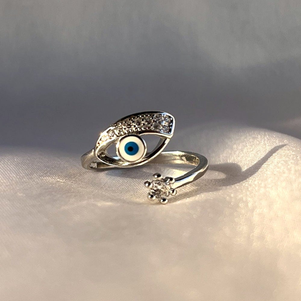 • 92.5 Sterling Silver Light Blue Evil Eye Designer Ring