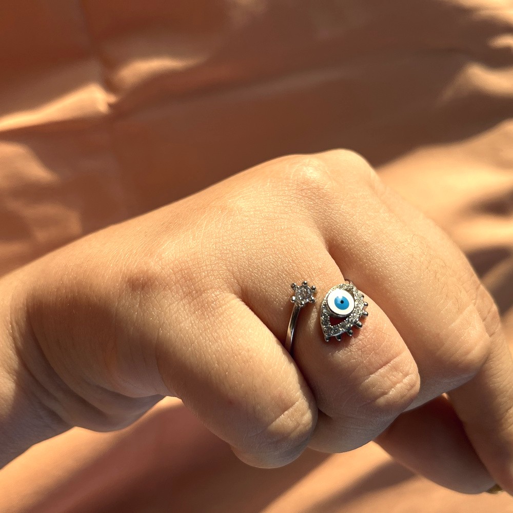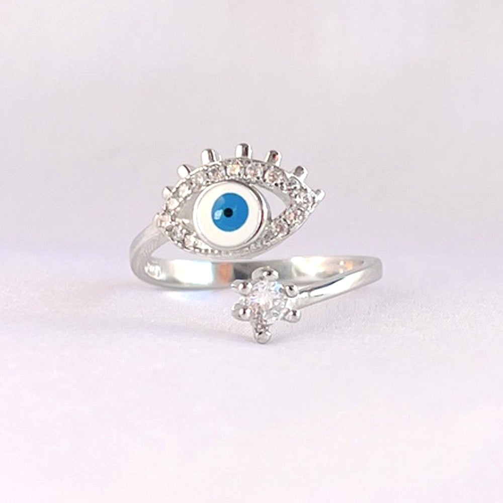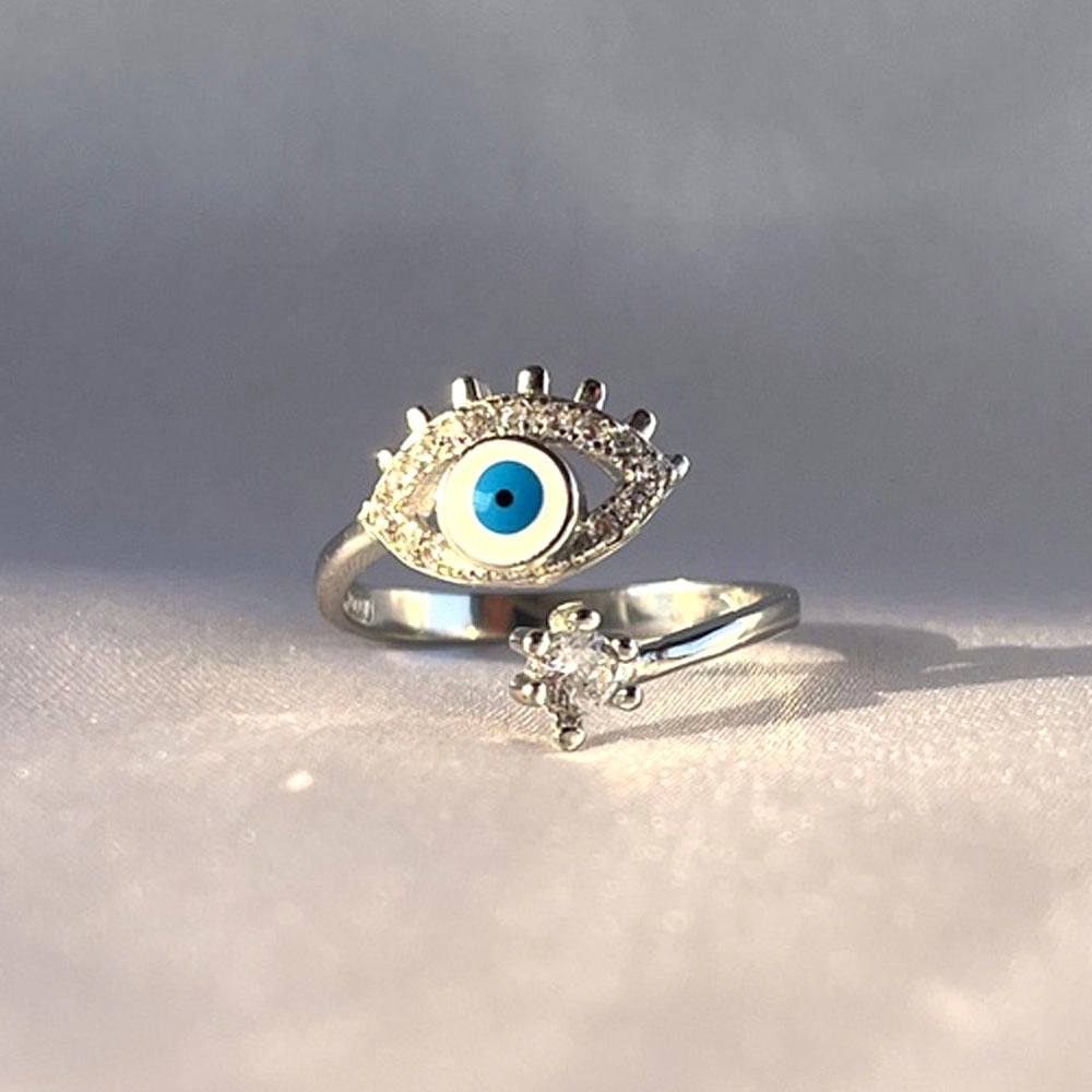 • 92.5 Sterling Silver Light Blue Evil Eye Lash Ring