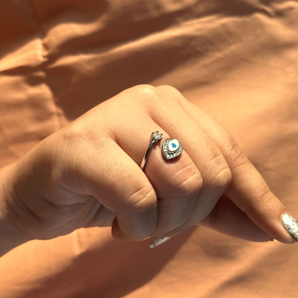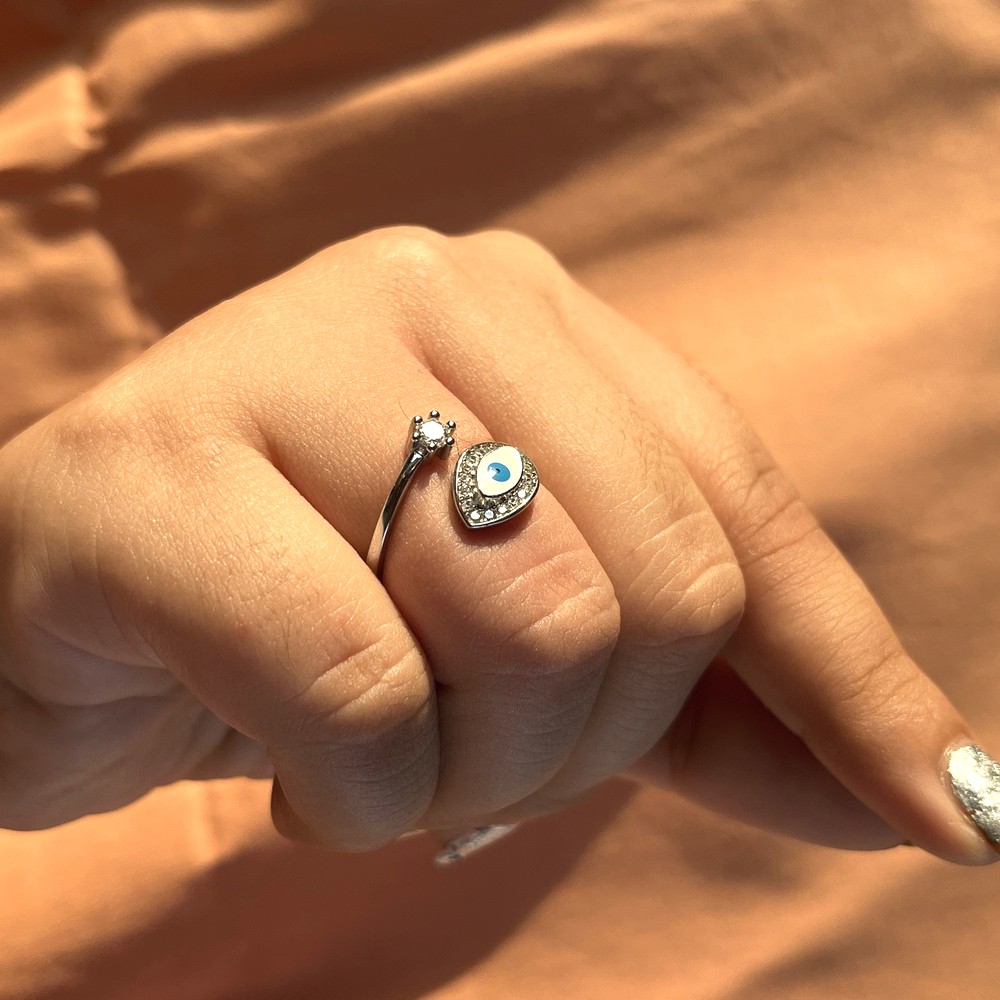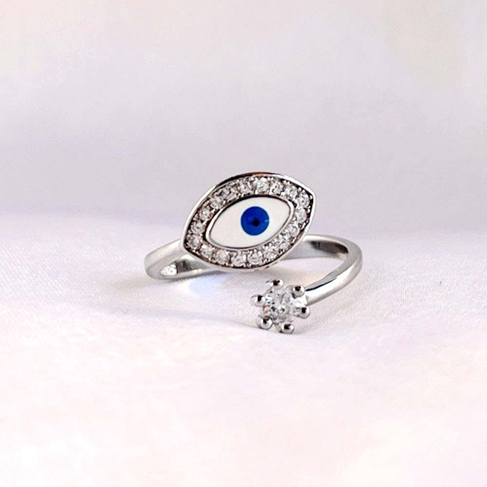 92.5 Sterling Silver Light Blue Evil Eye Protection Ring
