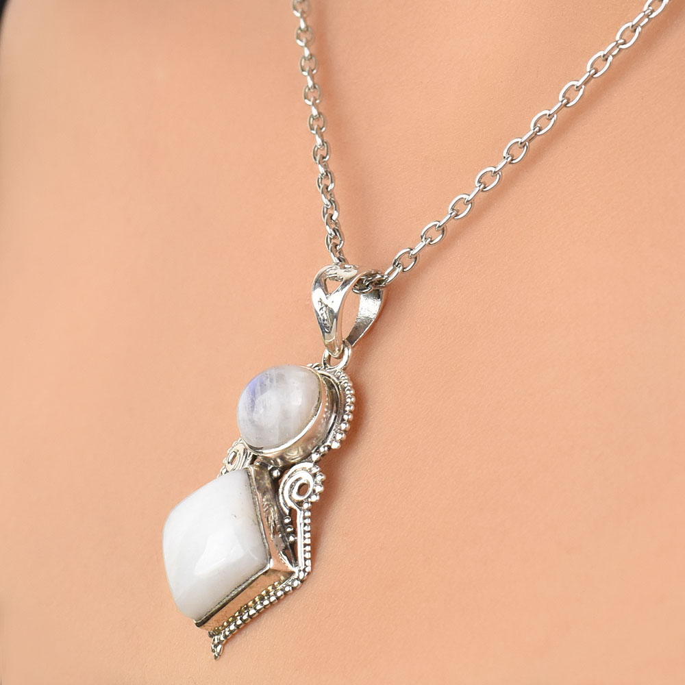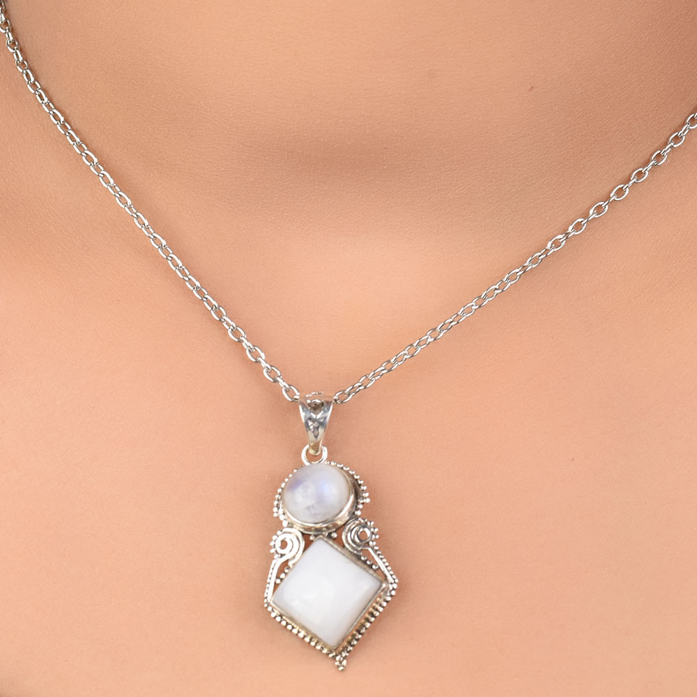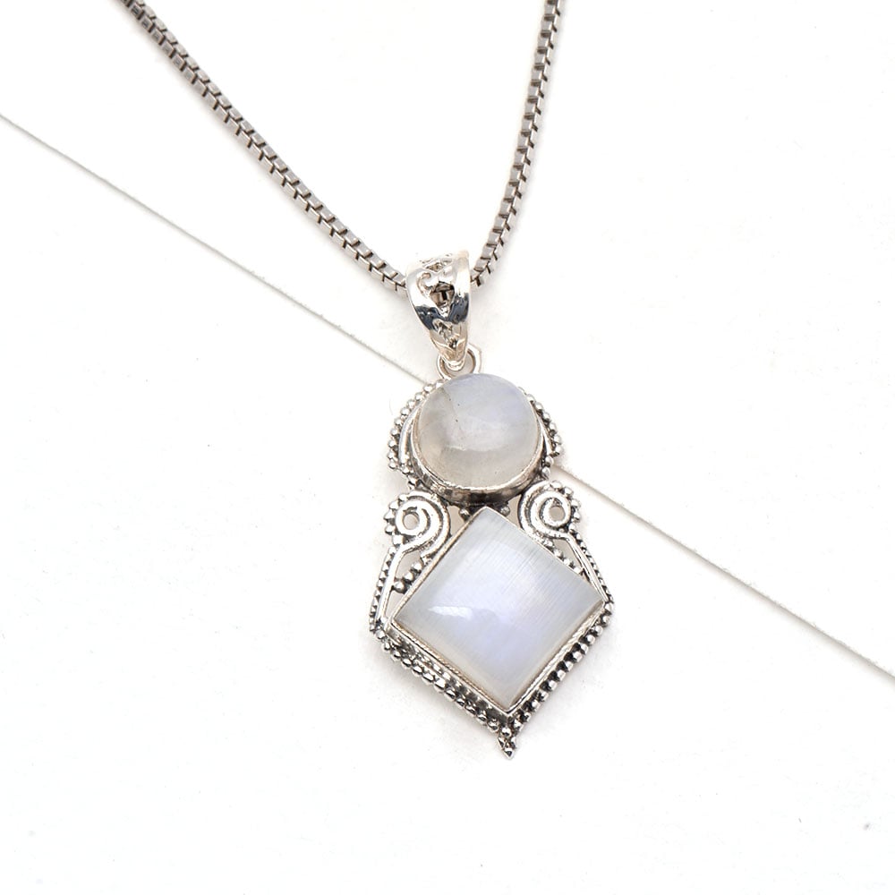 Handmade Round and square shaped Moonstone studded pure sterling Silver Pendant jewelry Best For Gifting. Ideal Gift For All Occasions Such As Birthday, Anniversary, Wedding, Engagement. Gift It To That Someone Special Whom You Love And They Will Cherish It Forever.