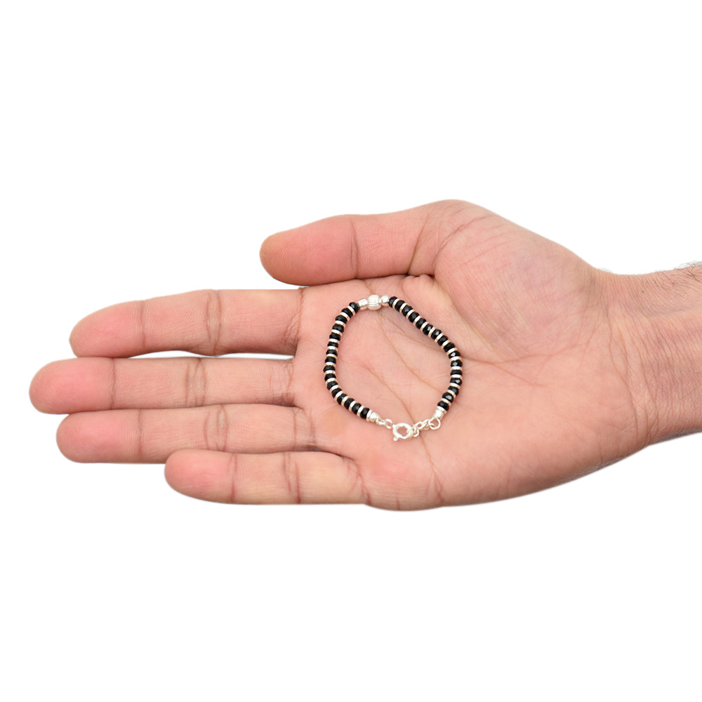 This stunning bracelet is made of a strong flexible cord and will fit a wide range of wrist sizes. The crystals are hand set in India by artisans using genuine silver beads.  This Nazariya Sterling Silver Bracelet is ideal for any occasion and would make an excellent gift for anyone. This bracelet makes you stand out and looks great on your wrist. It has an adjustable clasp and will fit people of all sizes.