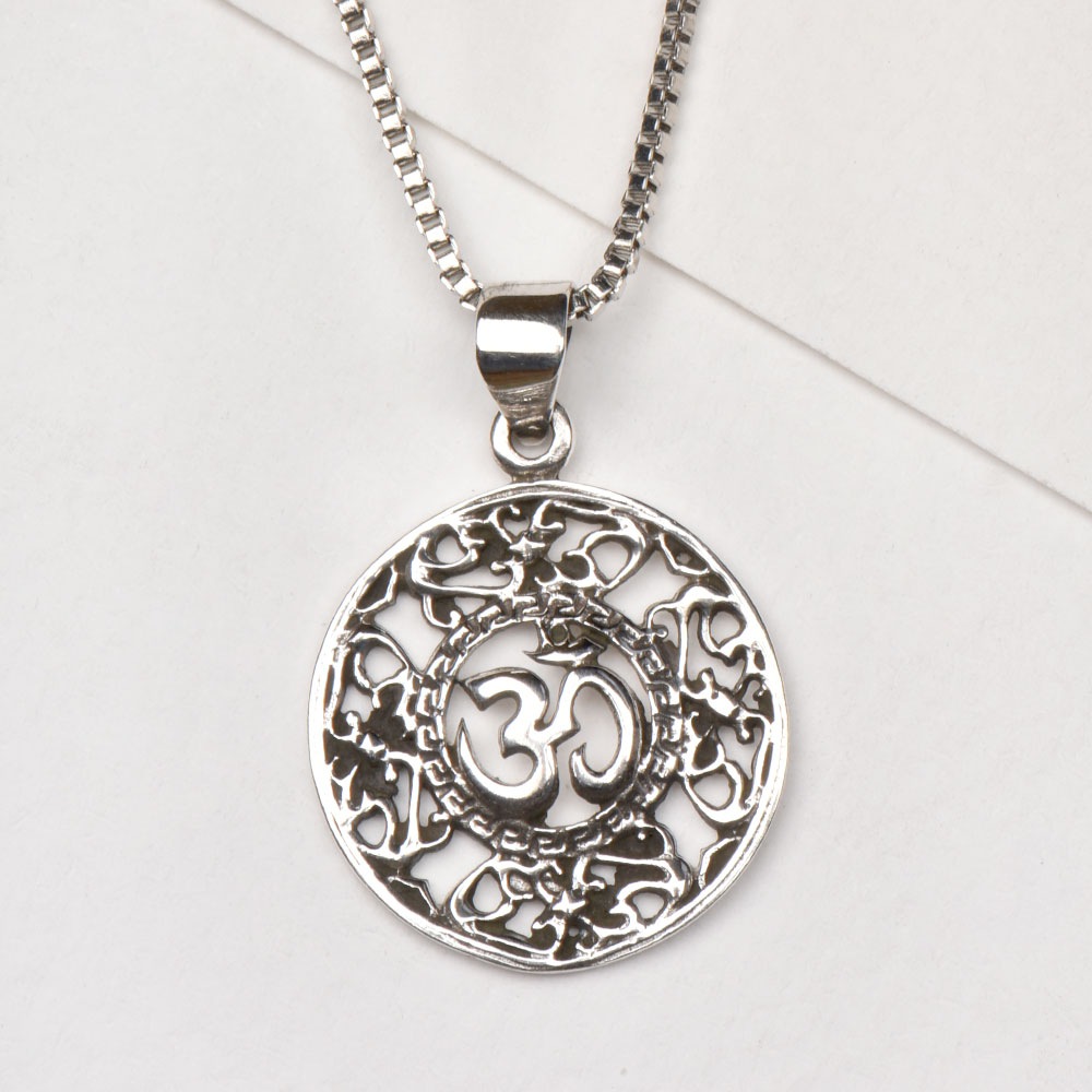 92.5 Sterling Silver Om Design Floral Jali work Filigree Pendant