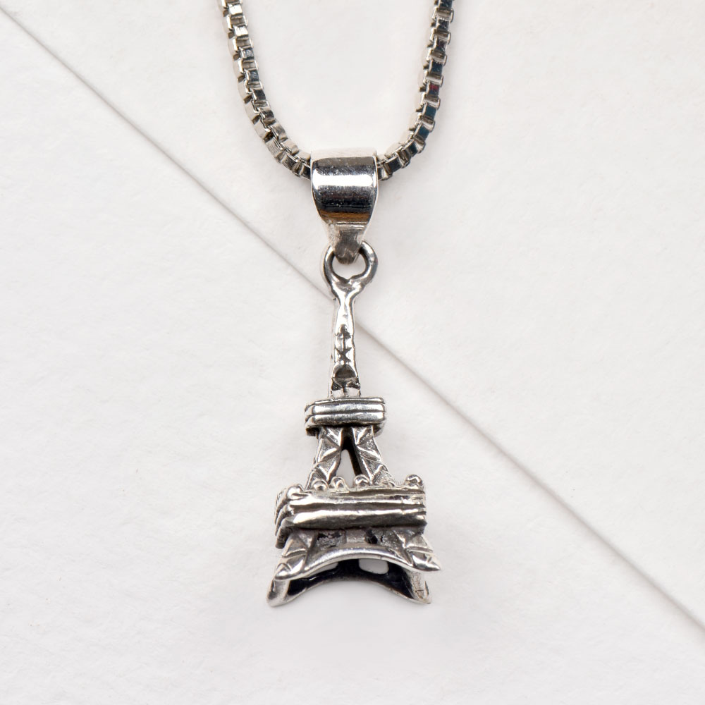 92.5 Sterling Silver Paris Eiffel Tower Pendant Necklace
