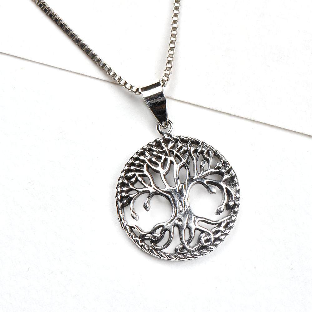 Round 92.5 Sterling Silver Pendant with tree of life with branches overhead and roots of tree underground Gift it to your sisiter,friend or mother during wedding, anniversaries, engagements, birthdays , Diwali , Christmas or other auspicious functions.