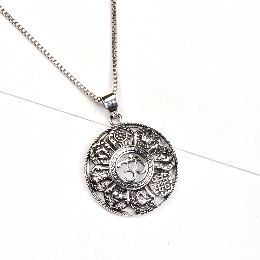 92.5 Sterling silver pendant Aum In Centre With Symbols In Outer Ring