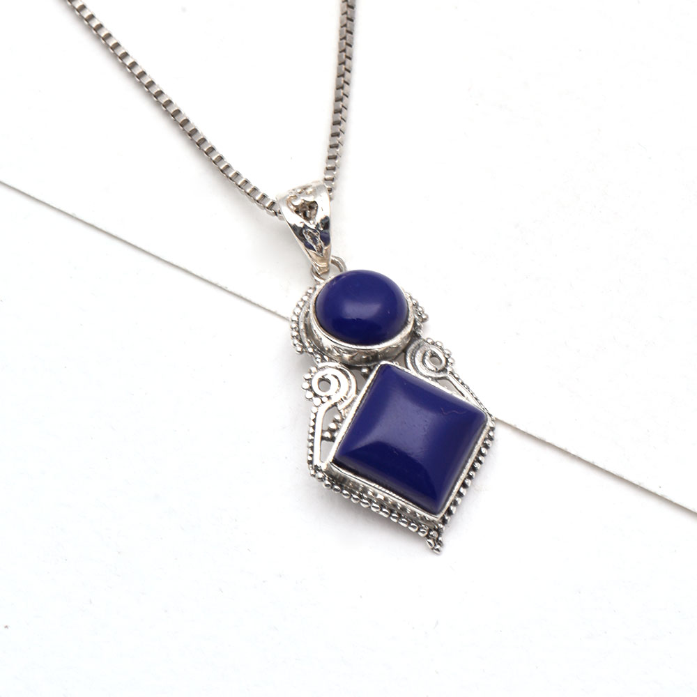 • 92.5 Sterling Silver Pendant Blue Tourmaline Gemstone Pendant