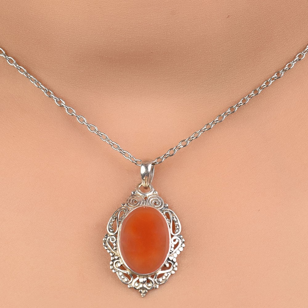 An oval red carnelian stone. This stone is mounted on a simple sterling silver pendant frame. Ideal Gift For All Occasions Such As Birthday, Anniversary, Wedding, Engagement. Gift It To That Someone Special Whom You Love And They Will Cherish It Forever.