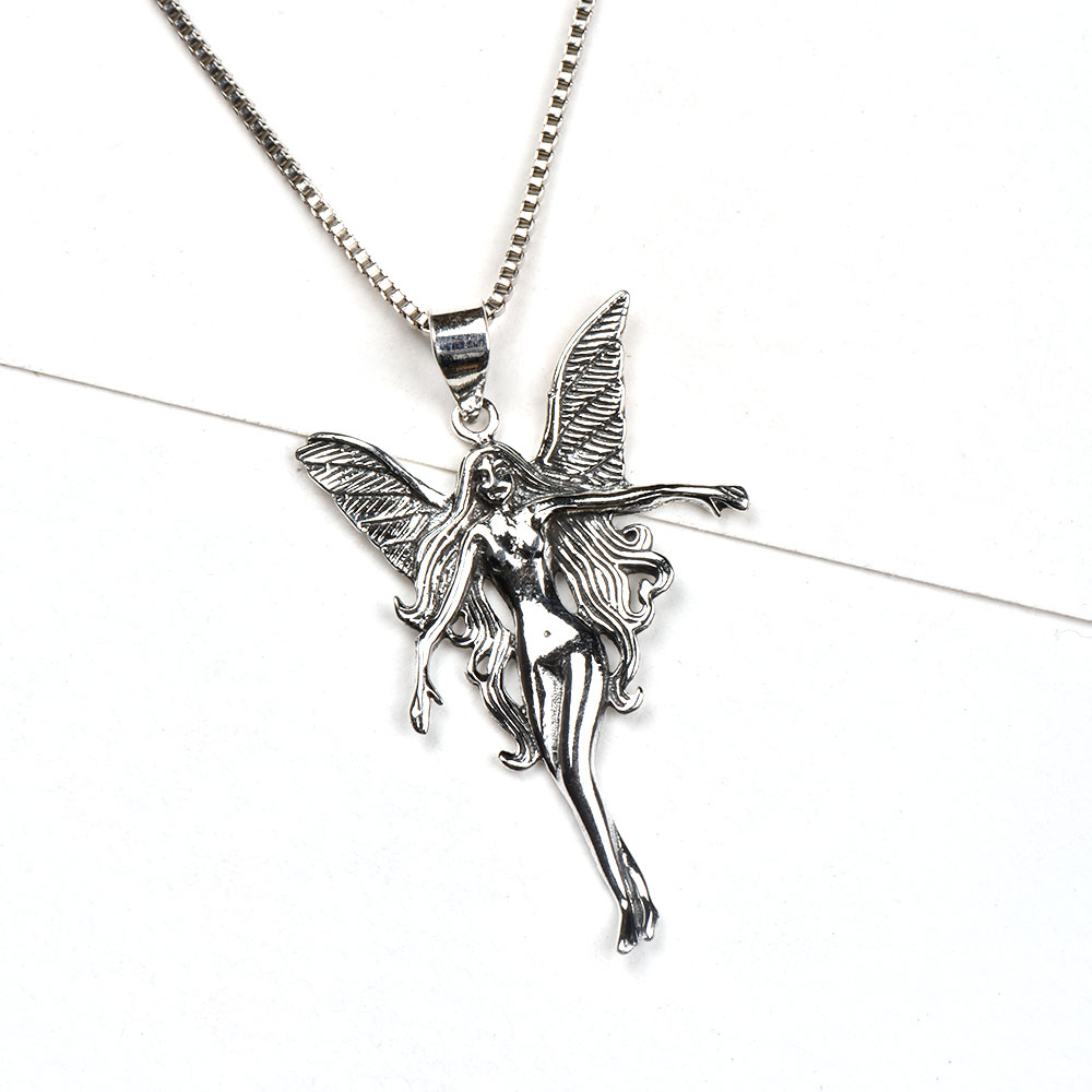 Handmade 92.5 Sterling Silver Pendant Guardian Angel for good luck with long hair and wings. Perfect gift for your friend , brother ,sisters on birthdays, anniversaries, Graduation, Return gift parting gift or a souvenir.