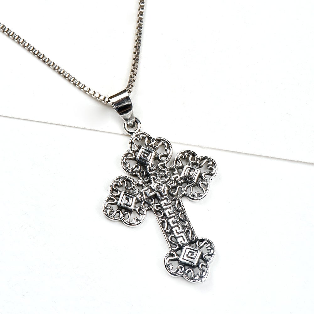 92.5 Sterling Silver Pendants in holy cross design with engraved pattern and maze design on the four corners and directions. It is the perfect gift for weddings, engagements, birthdays, Halloween, Christmas and new year.