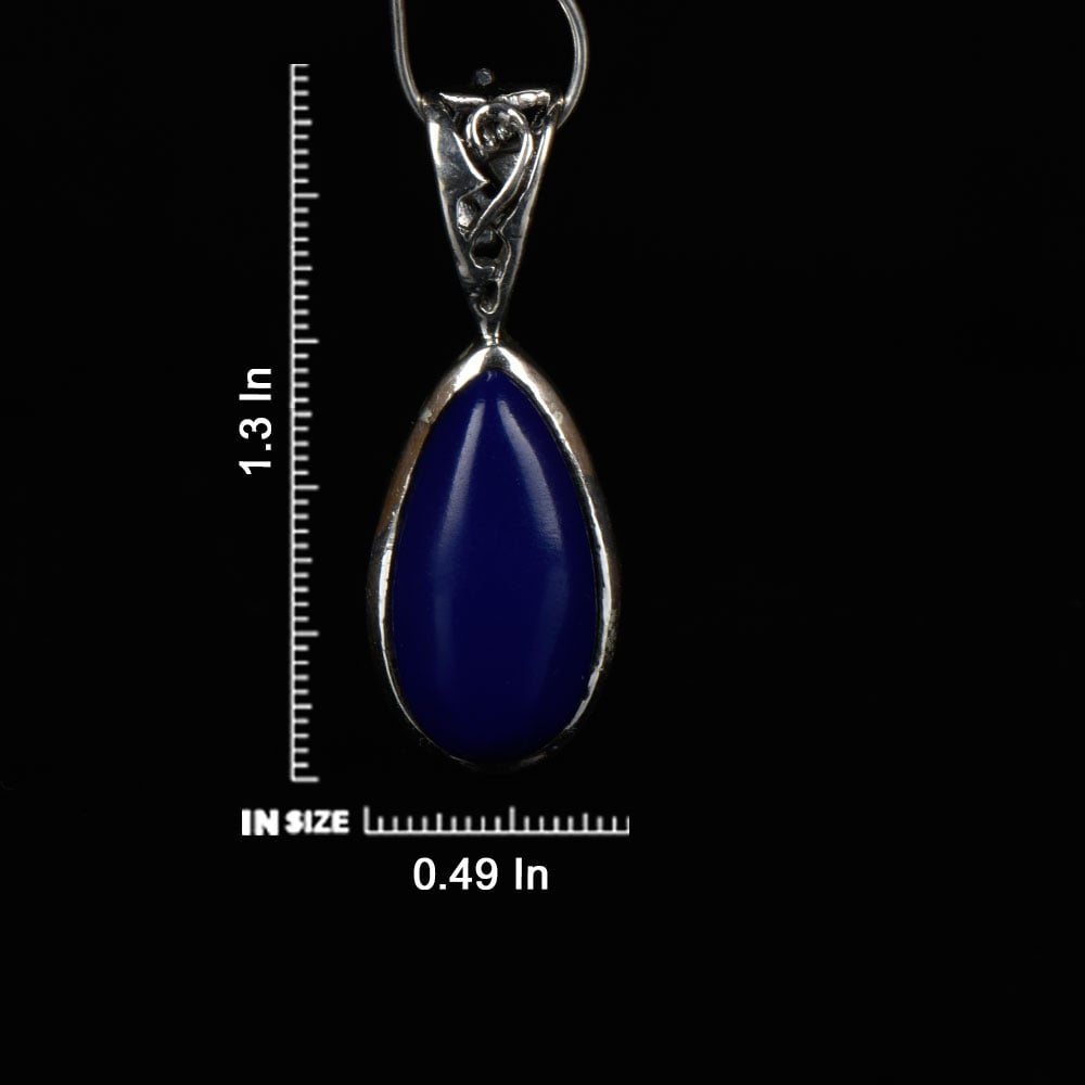 92.5 Sterling Silver Pendant Long Teardrop Shaped Blue Tourmaline Gemstone Pendant